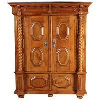 Barock Stollenschrank Nussbaum mit Einlegearbeiten