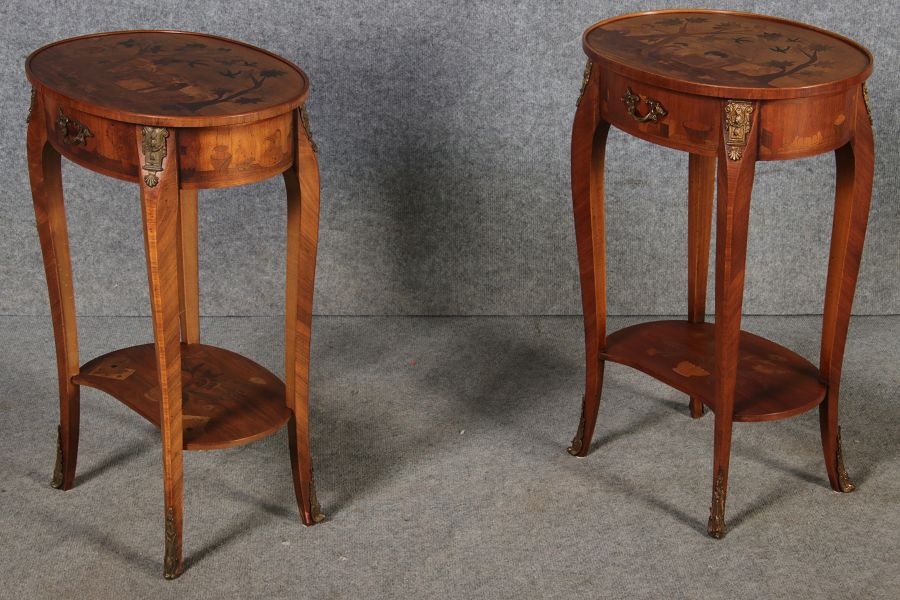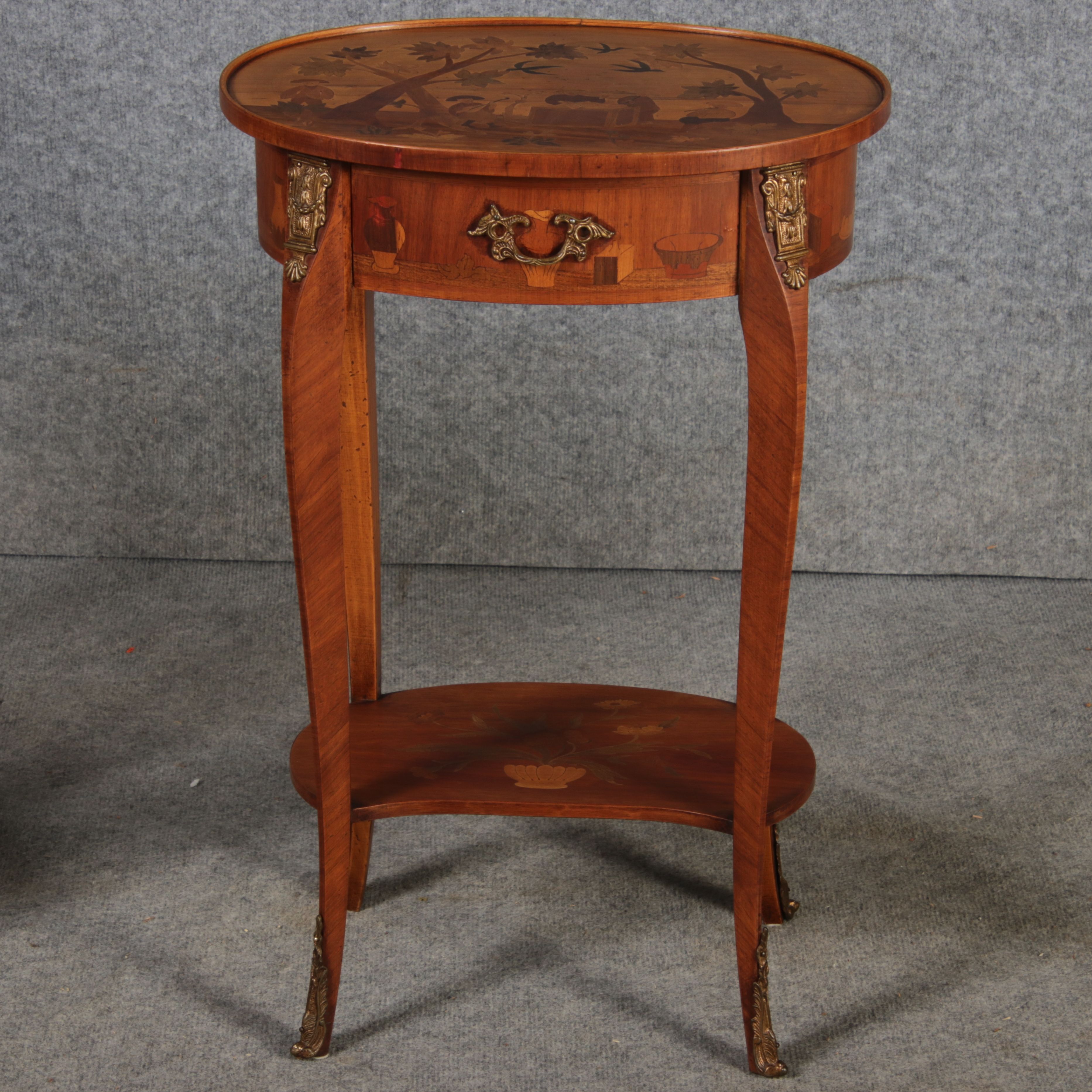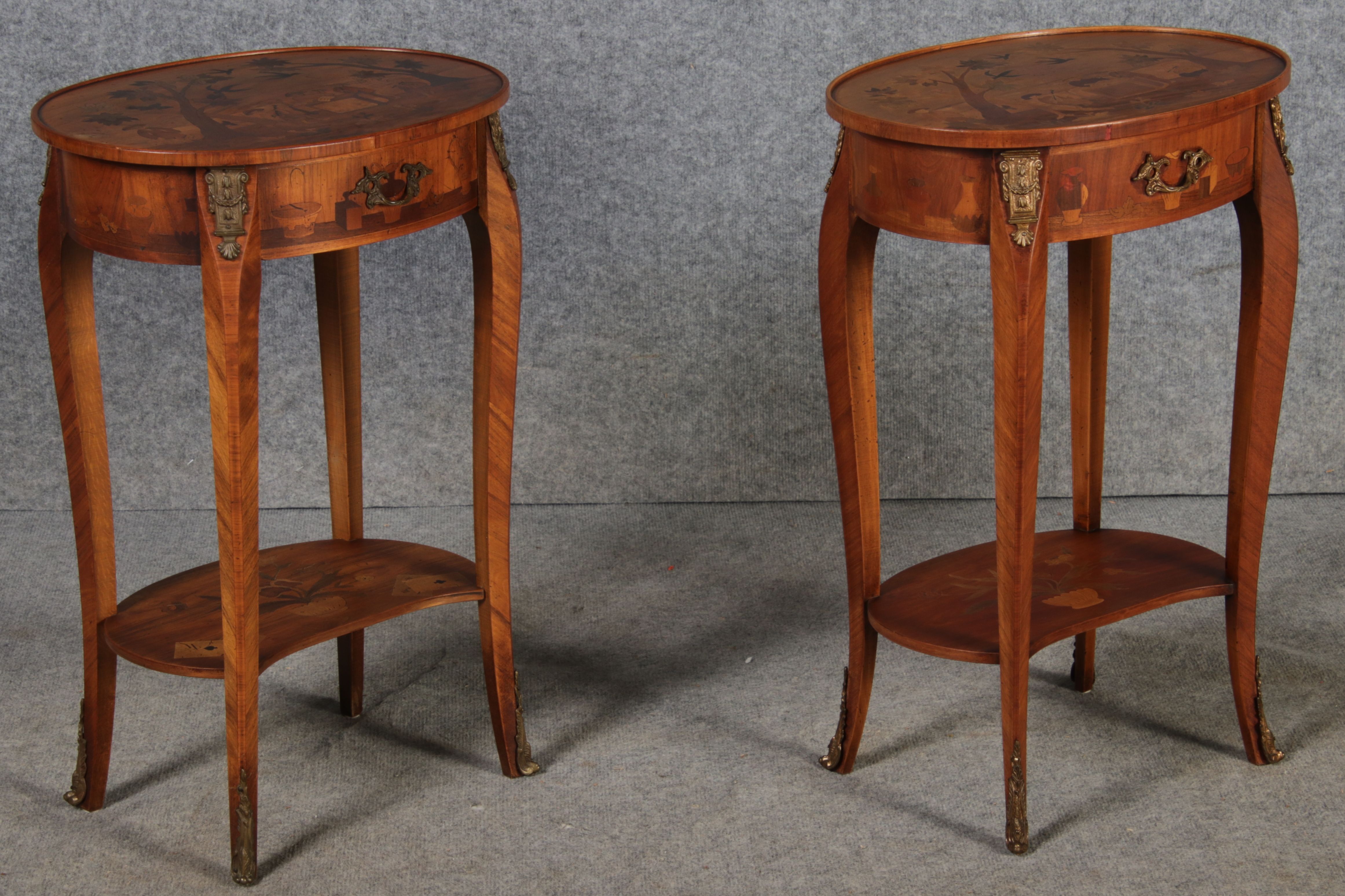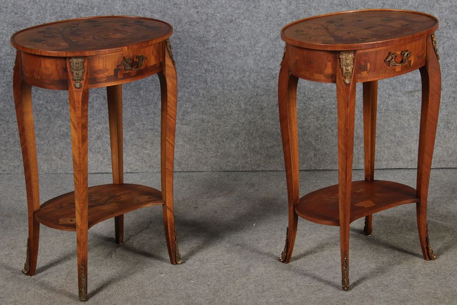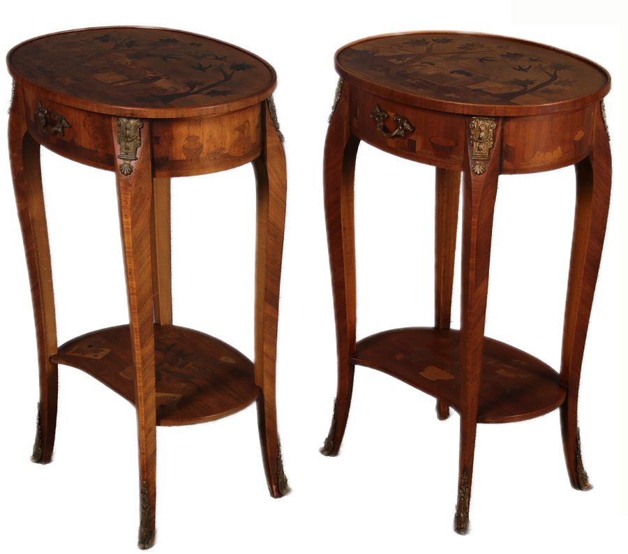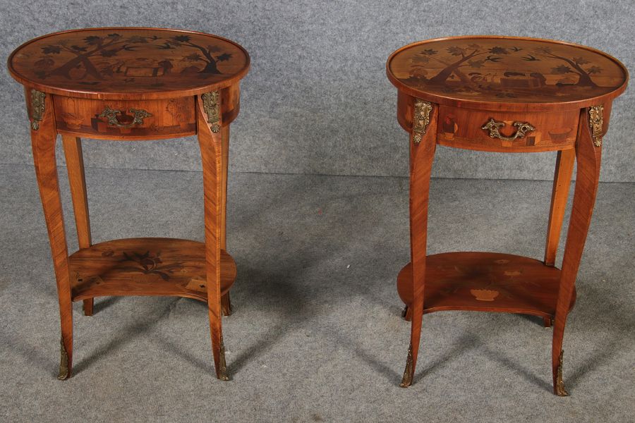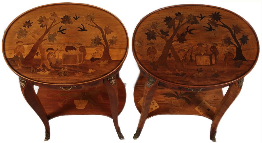 Zwei Antike Beistelltische Louis XV Stil Chinoiserie Intarsien um 1920 |