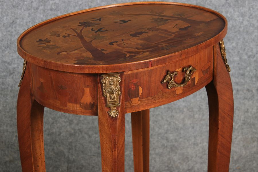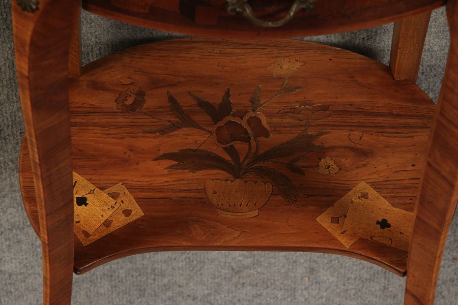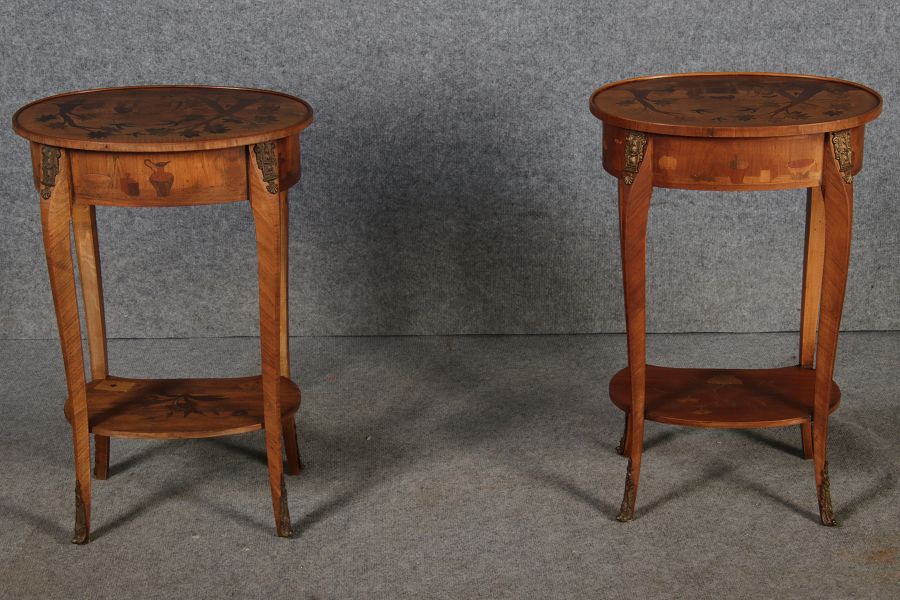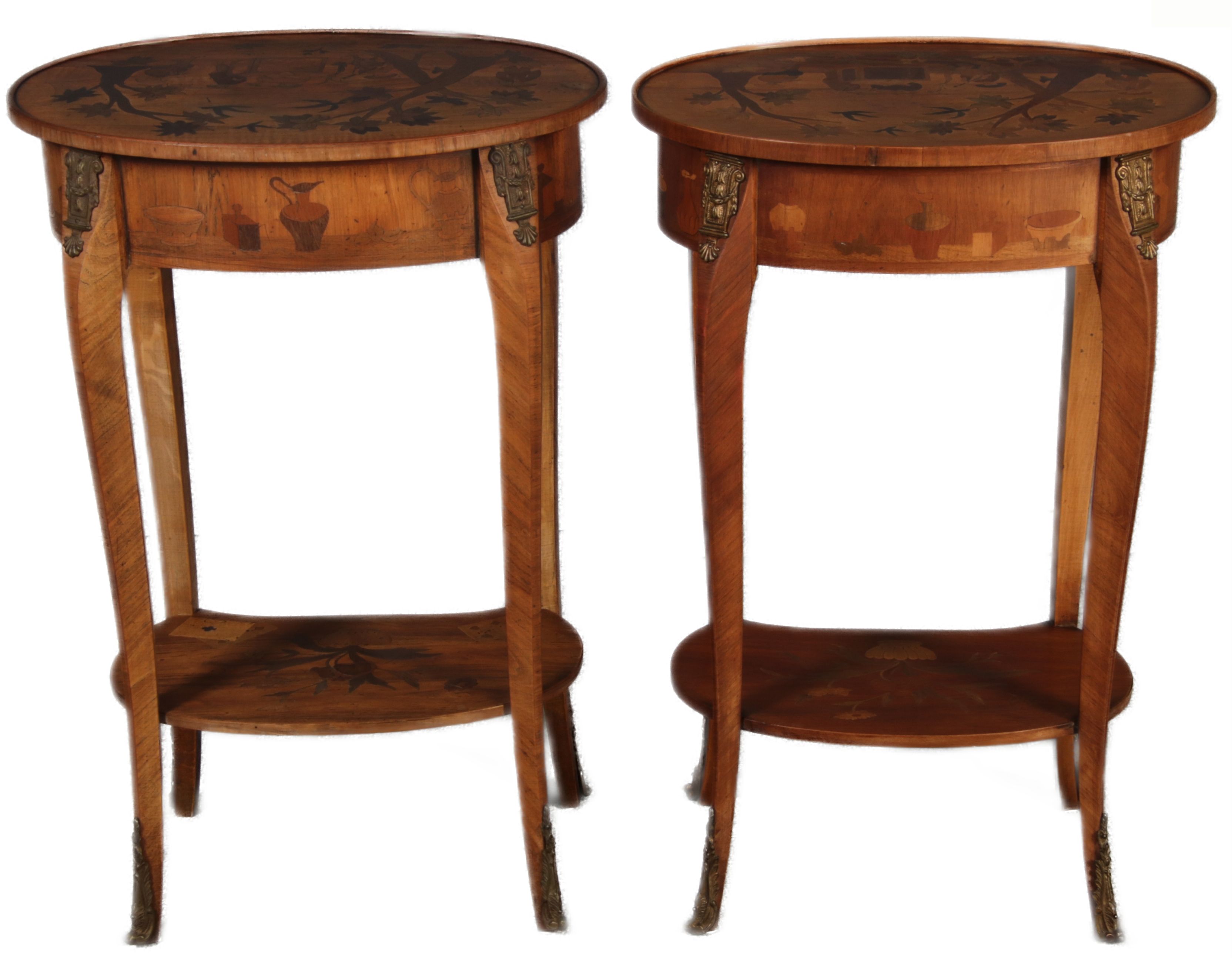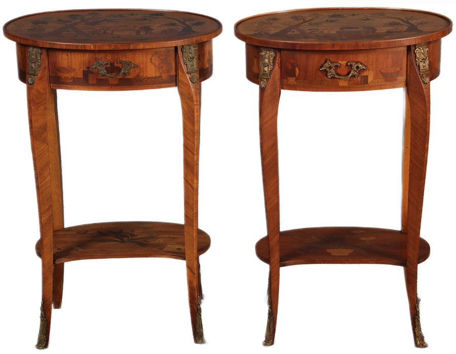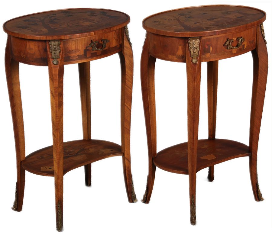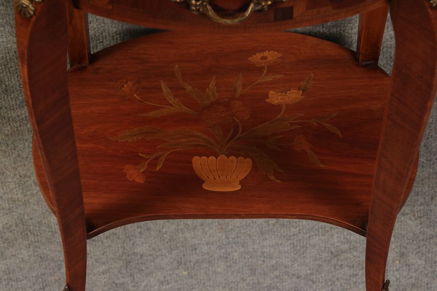 Zwei Antike Beistelltische Louis XV Stil Chinoiserie Intarsien um 1920 |