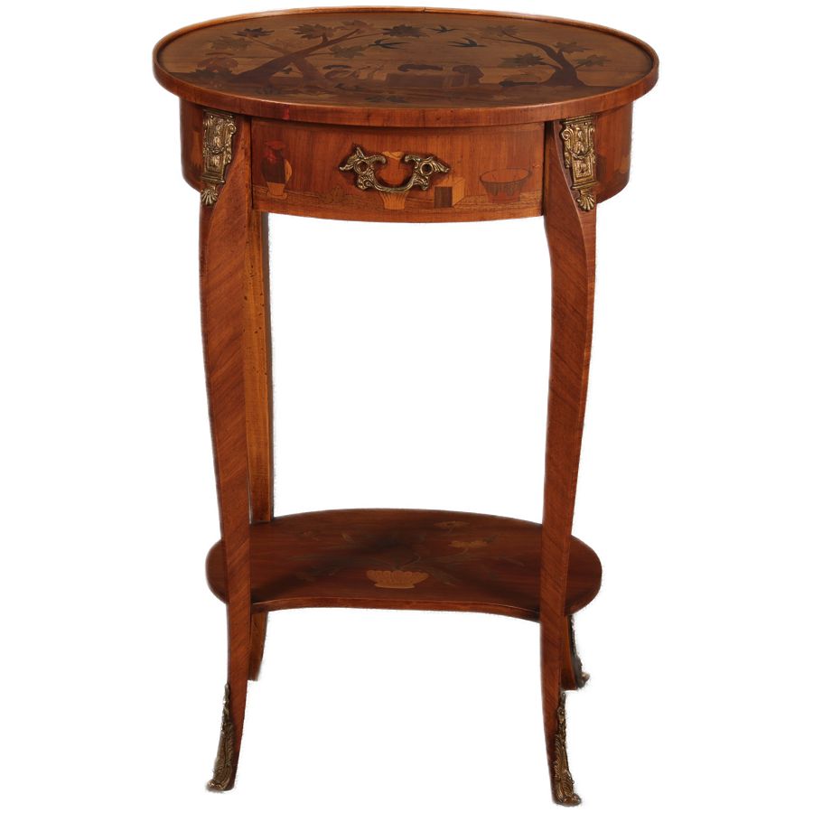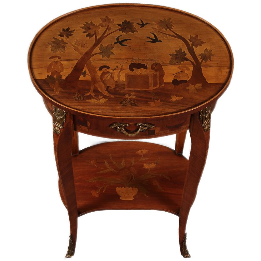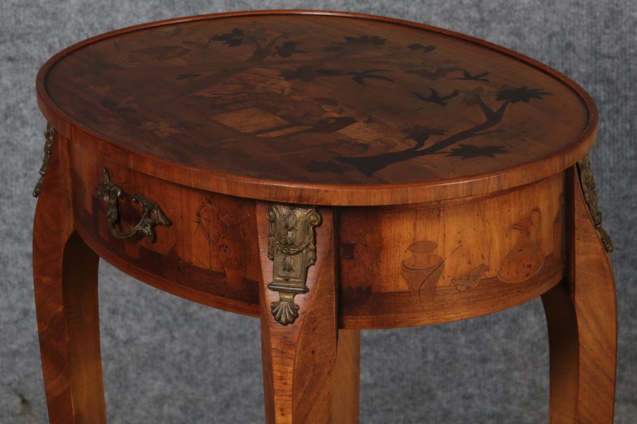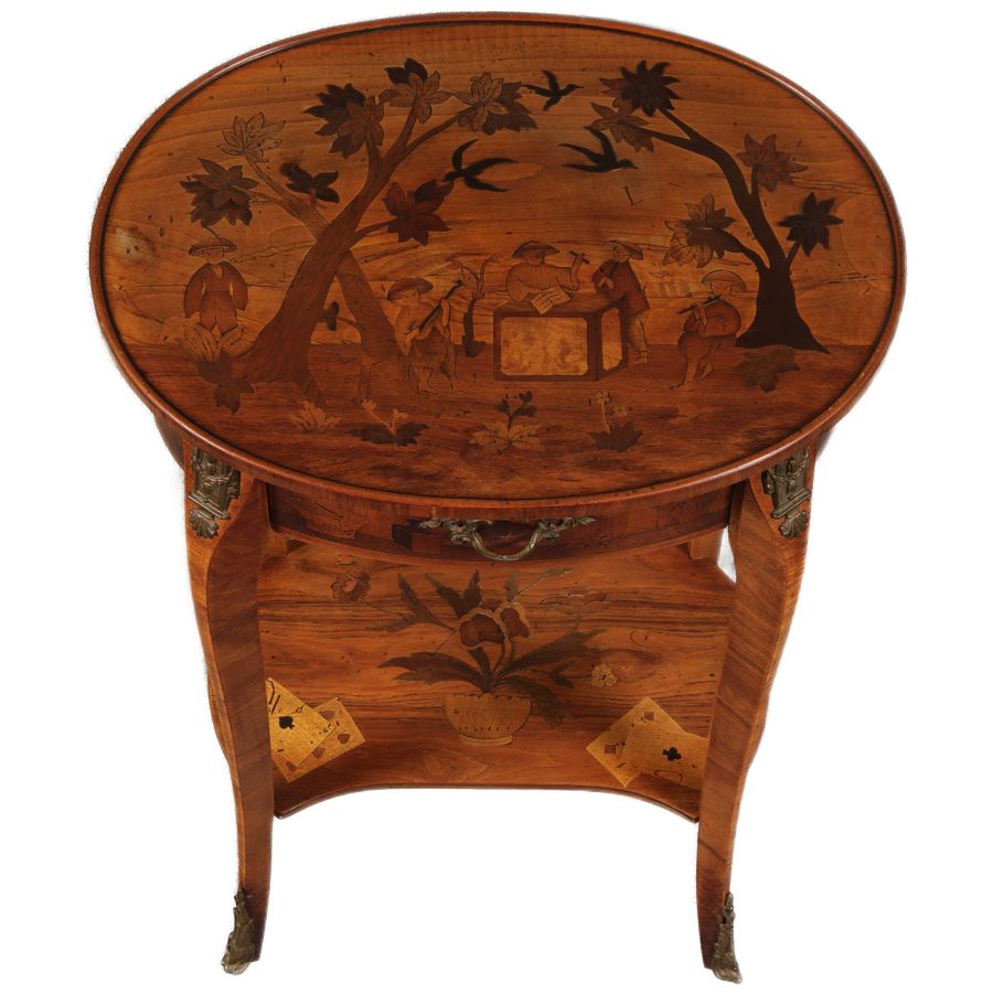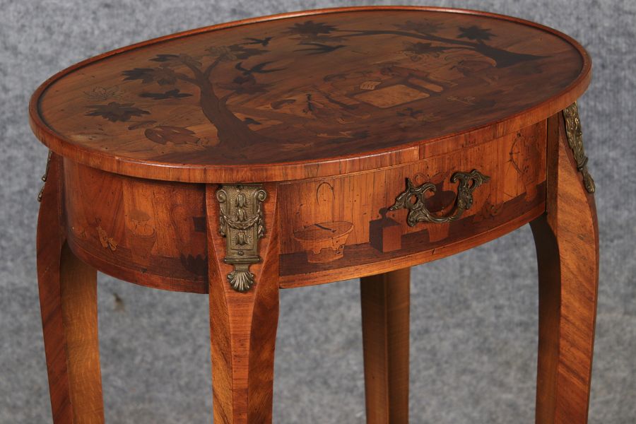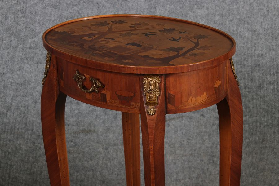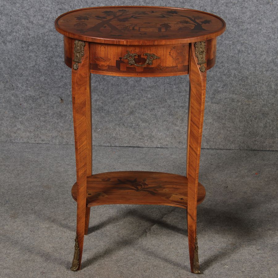 Zwei Antike Beistelltische Louis XV Stil Chinoiserie Intarsien um 1920 |