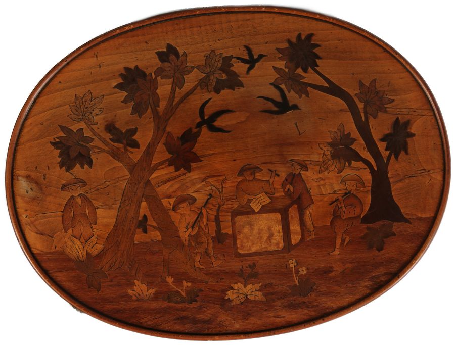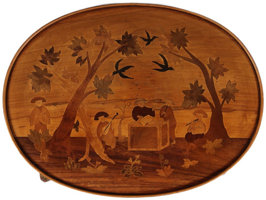 Beistelltische mit Chinoiserie Intarsien frühes 20. Jahrhundert um 1920