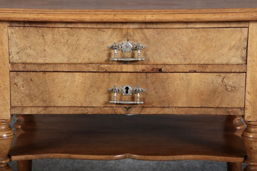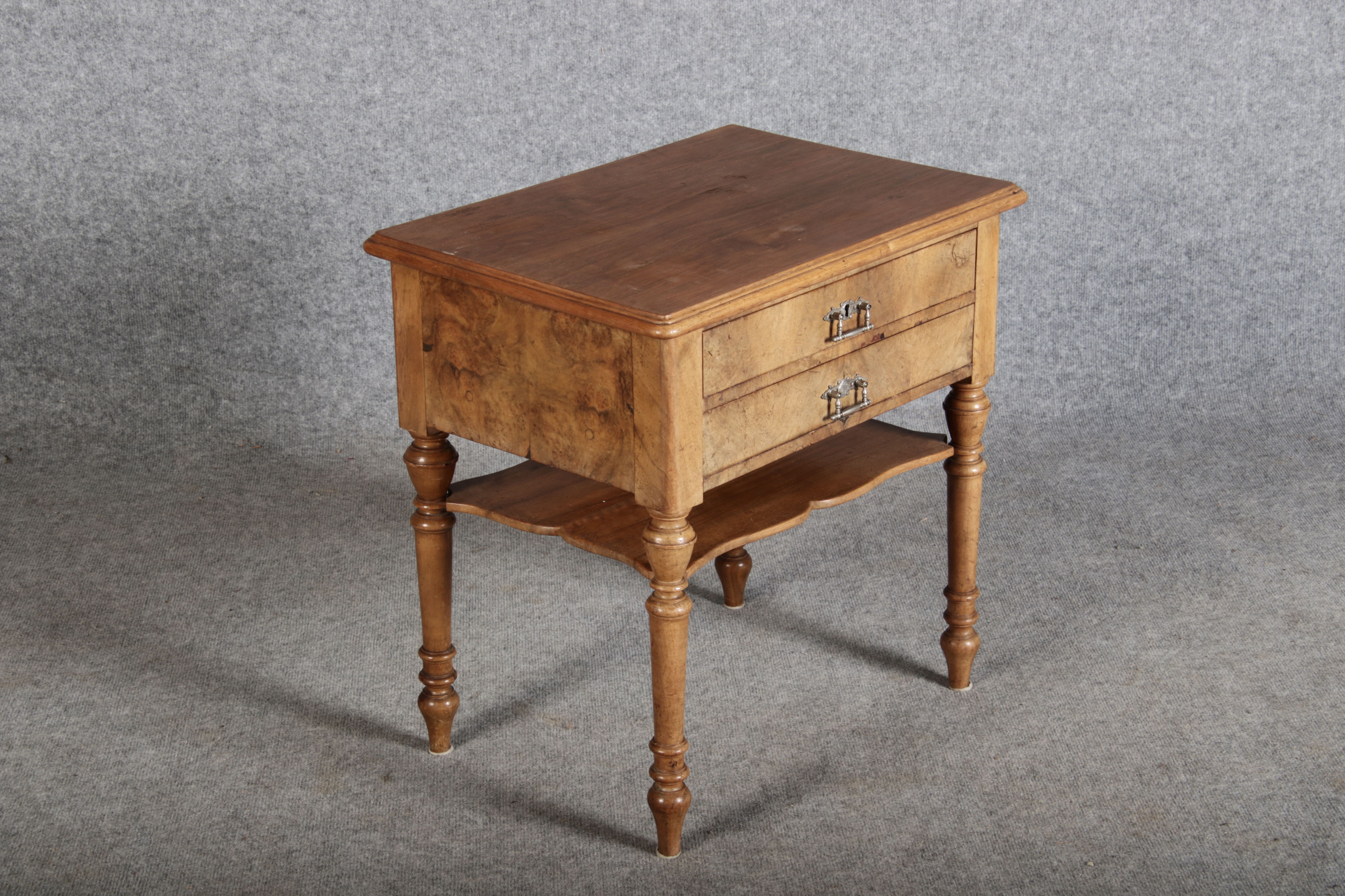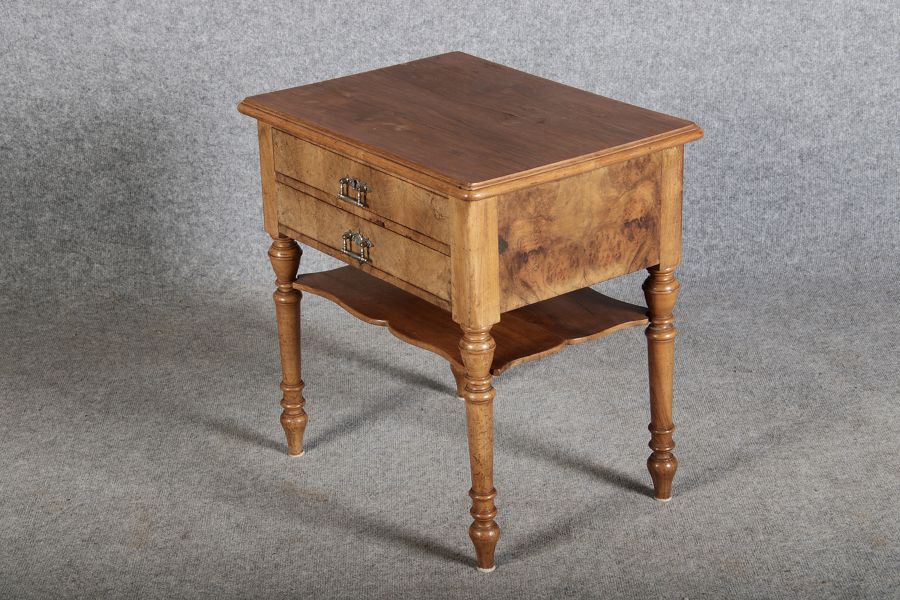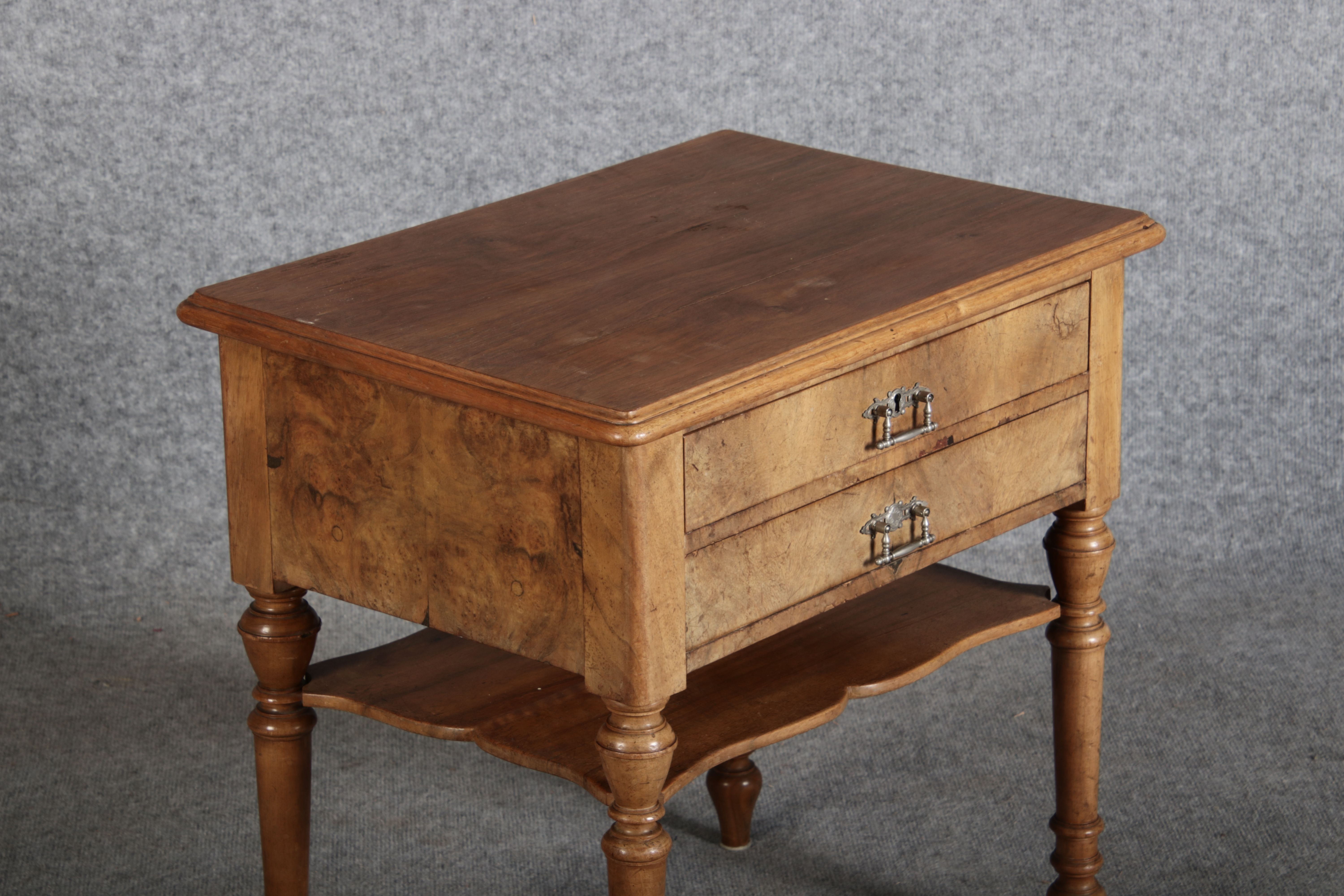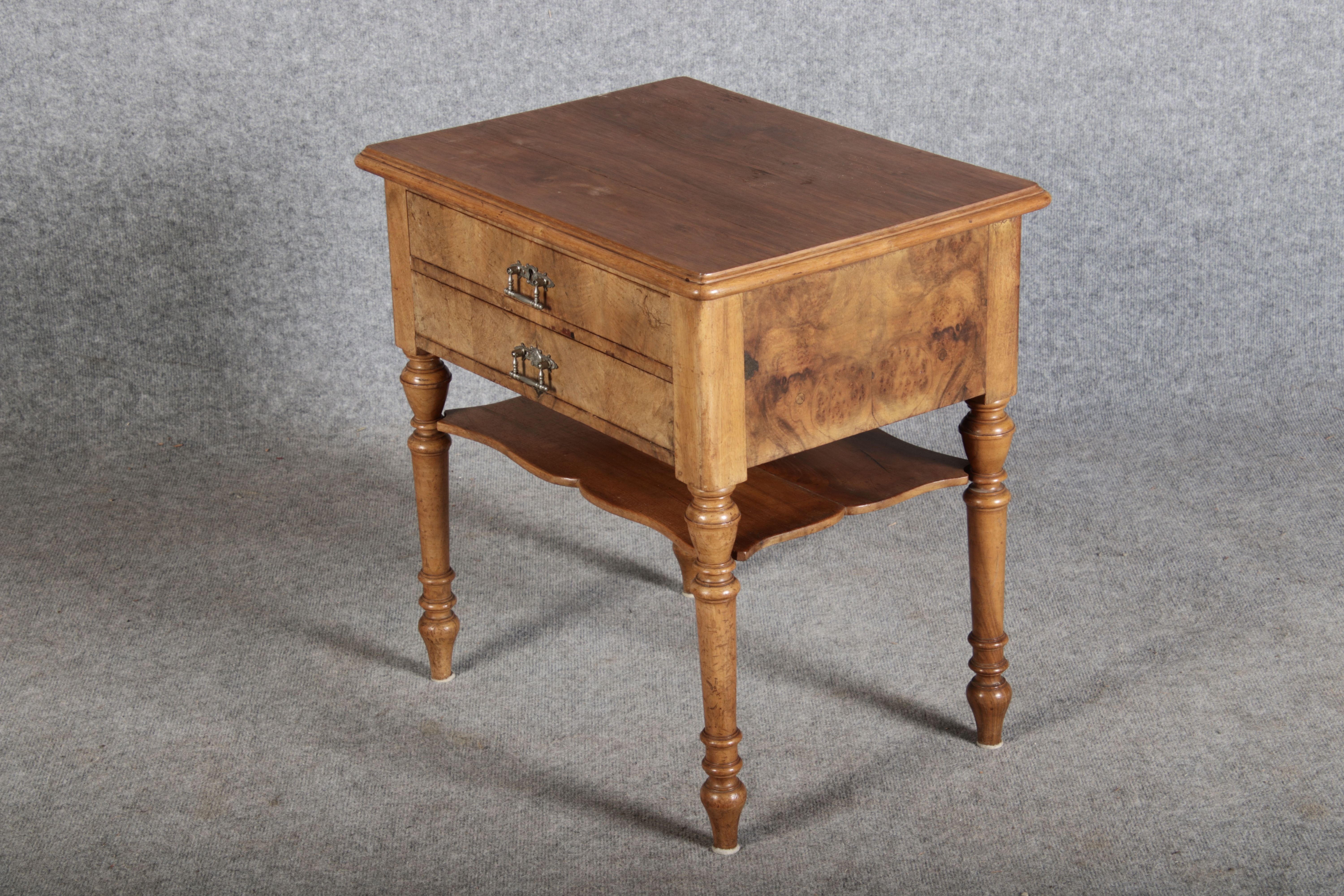 Masse/dimensions: Höhe/Height ca. 61 cm, Breite /Broad ca. 59 cm Tiefe /Deep ca. 43,5m Holz/wood Die Holzart ist Nussbaum auf Weichholz furniert
