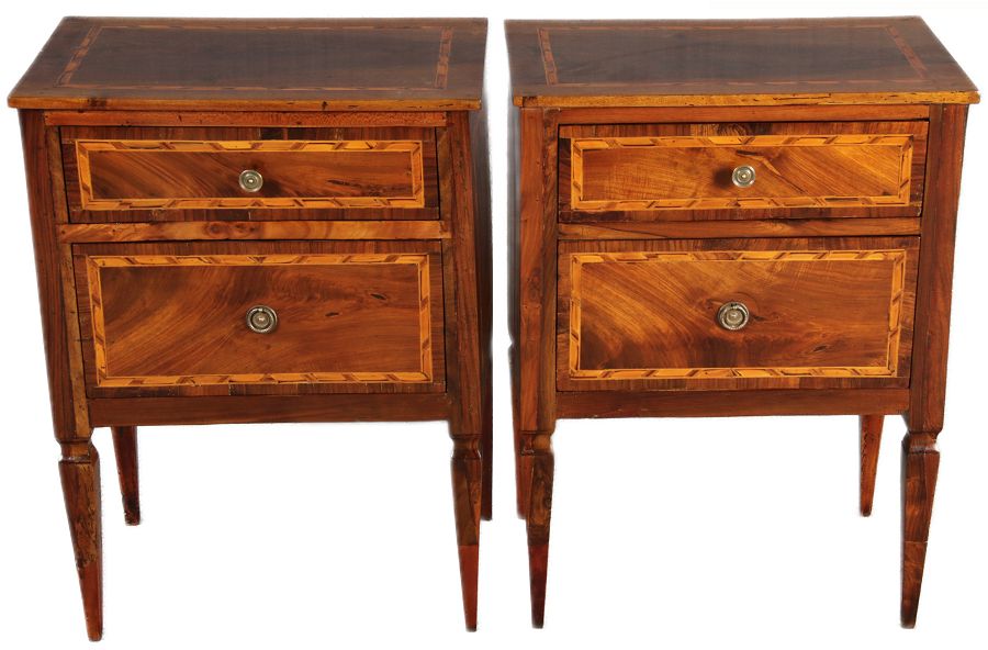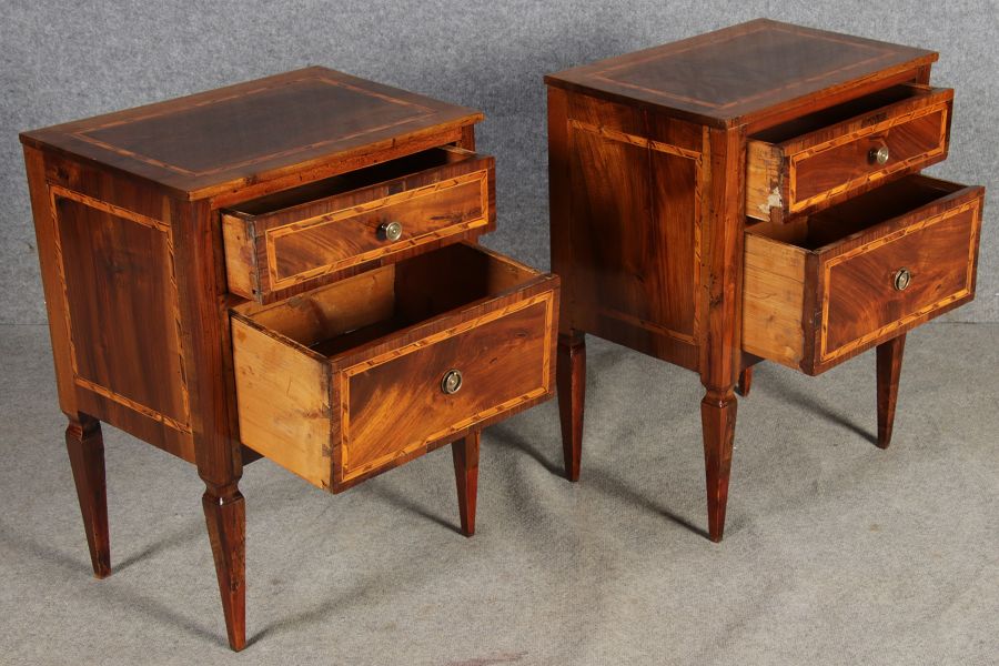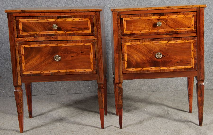Zwei kleine Antike Louis XVI Kommoden, Nachtschränkchen um 1780 Nussbaum |