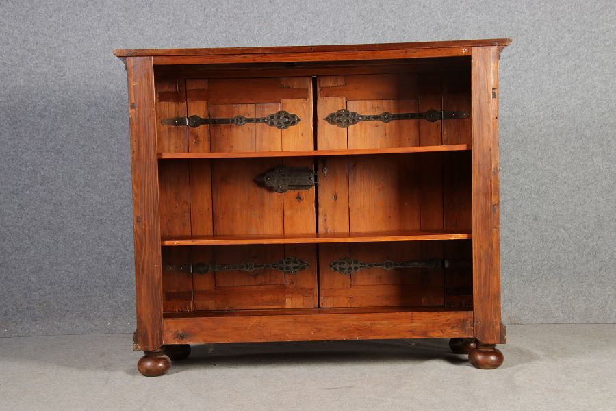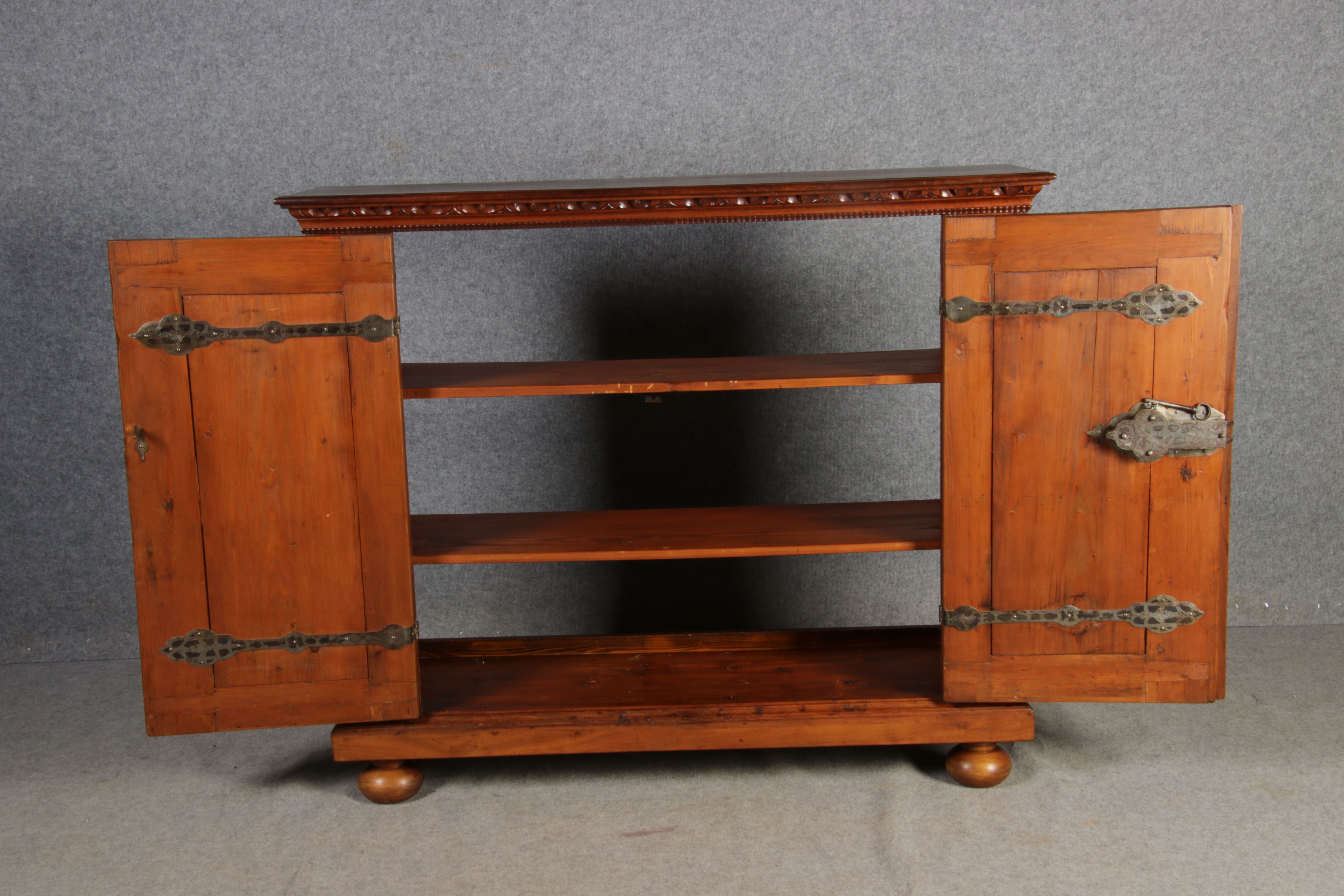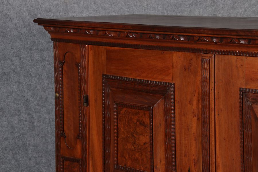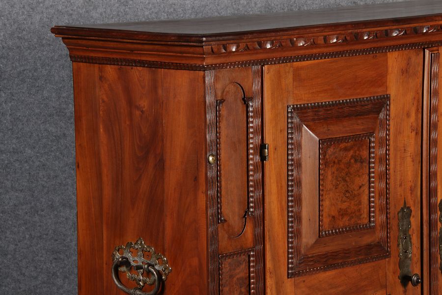 Masse/dimensions: Höhe/Height ca. 132 cm, Breite Korpus/Broad Boda ca. 146 cm, Breite Gesims/Broad cornice ca. 156,5 cm, Tiefe Korpus/Deep body ca. 43 cm, Tiefe Gesims/Deep cornice ca. 48 cm,