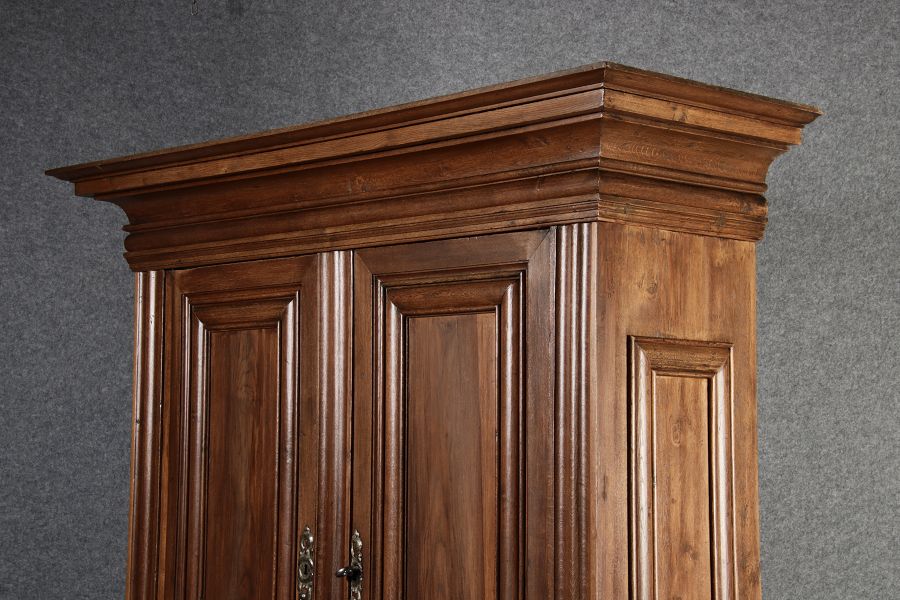 Masse/dimensions: Höhe/Height ca. 242 cm, Breite Korpus/Broad Boda ca. 182 cm, Breite Gesims/Broad cornice ca. 228 cm, Tiefe Korpus/Deep body ca. 60 cm, Tiefe Gesims/Deep cornice ca. 80 cm,