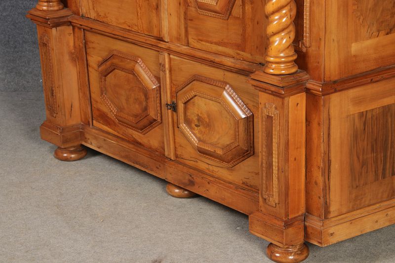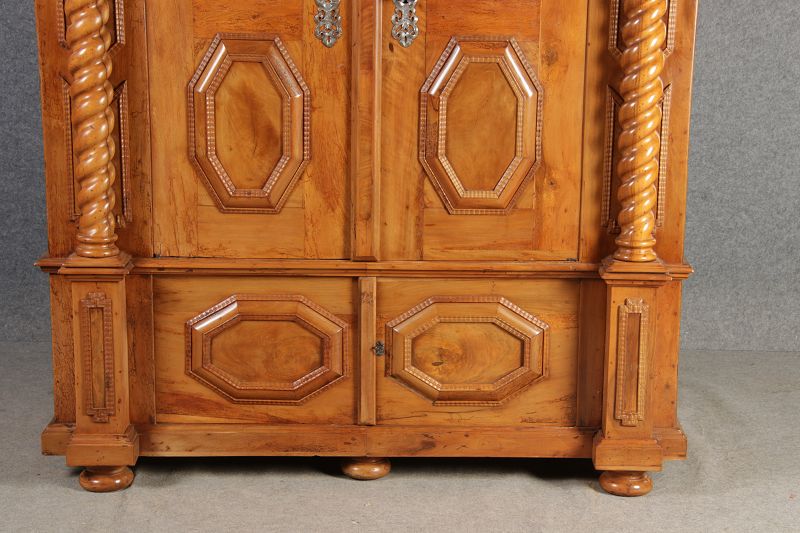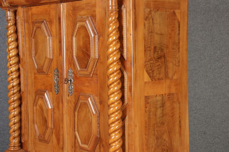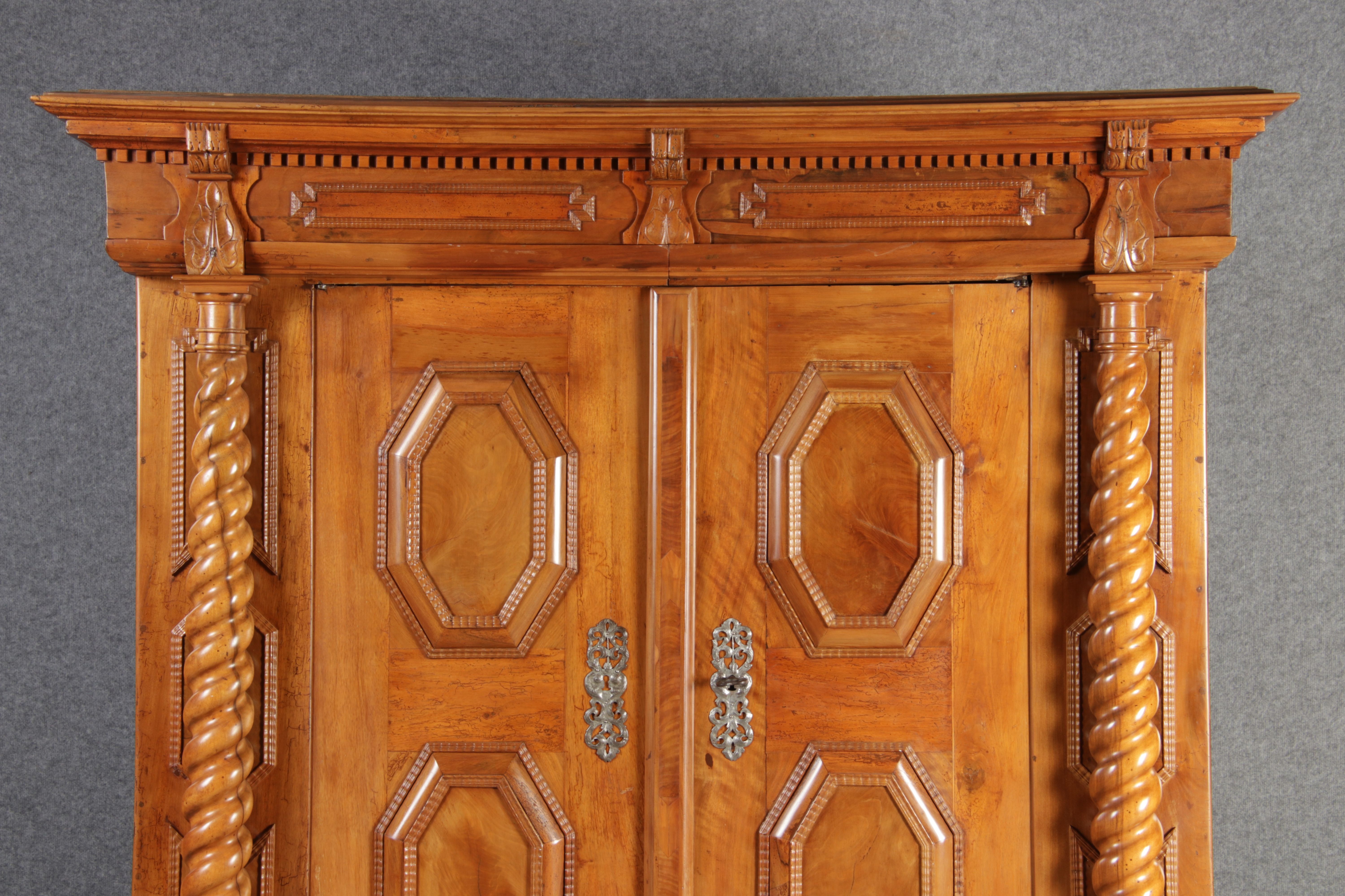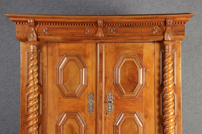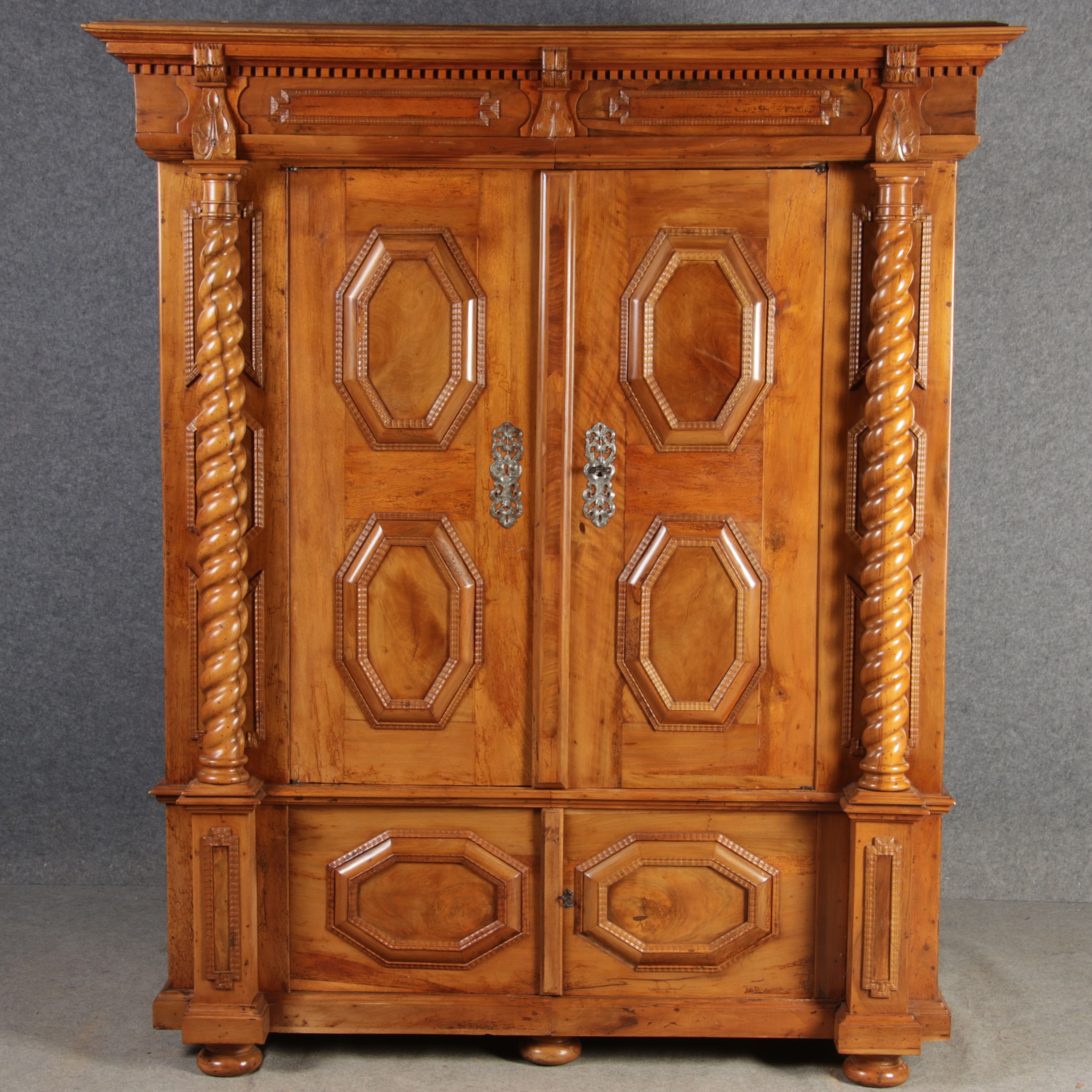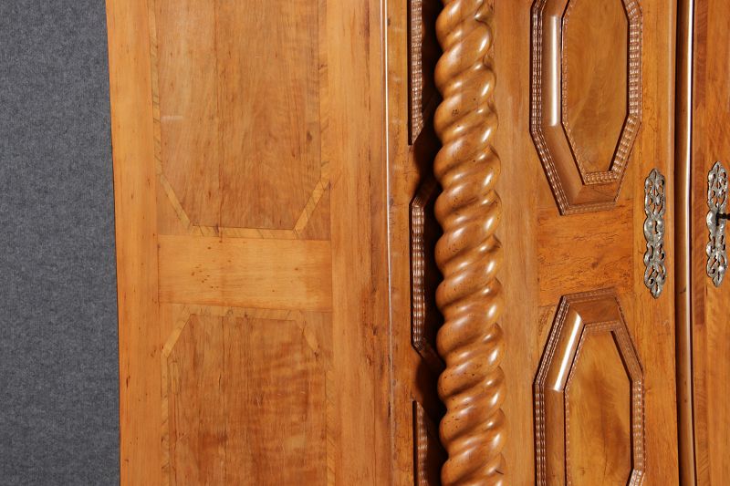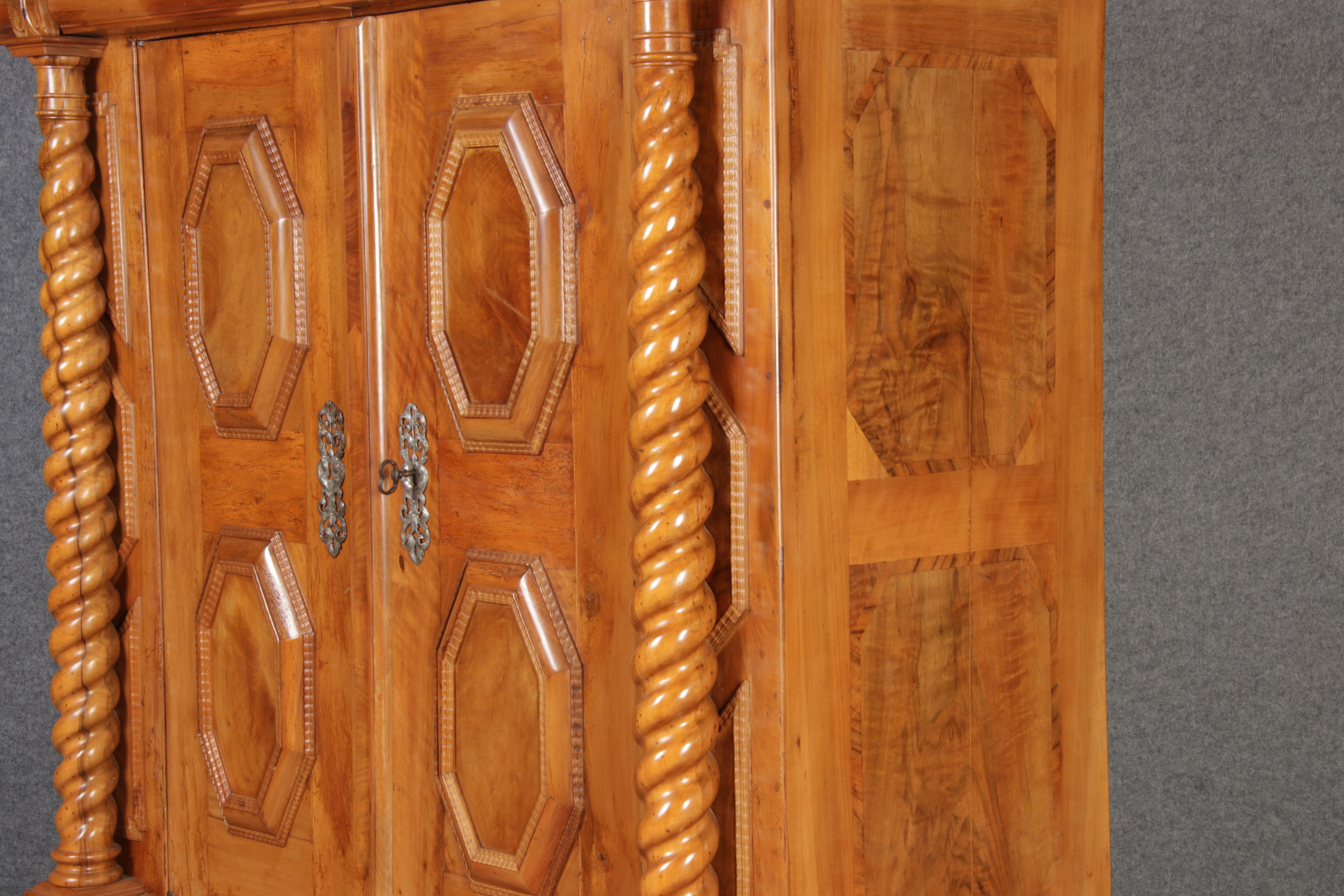 Antiker spät Renaissance früh Barock Schrank um 1700 Nussbaum mit Korkenzieher Säulen |