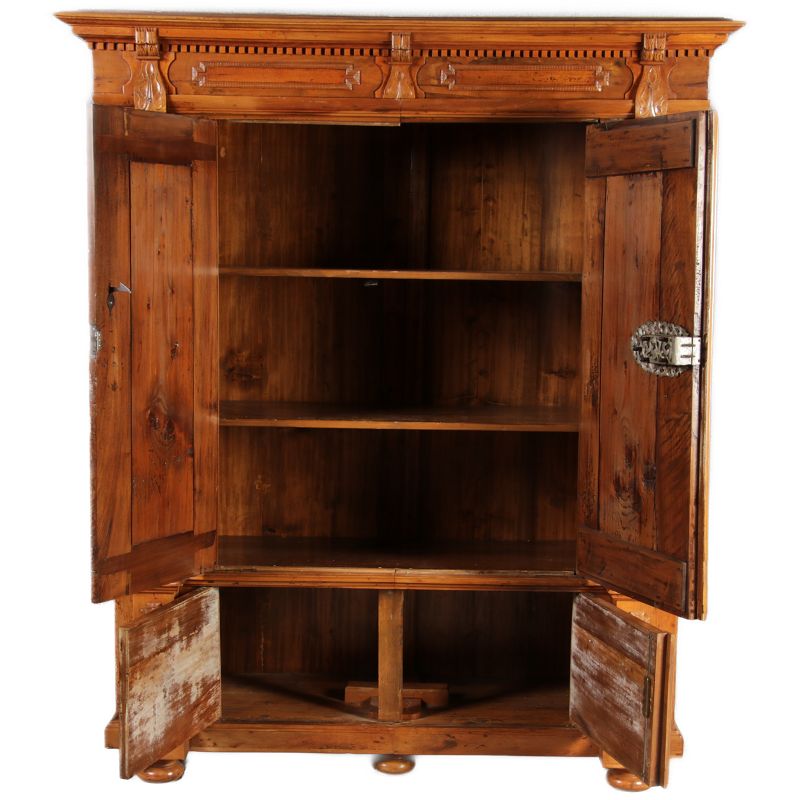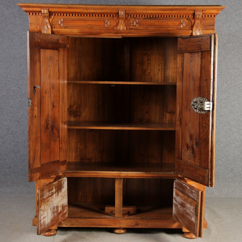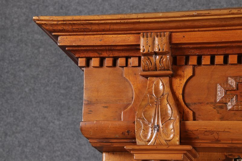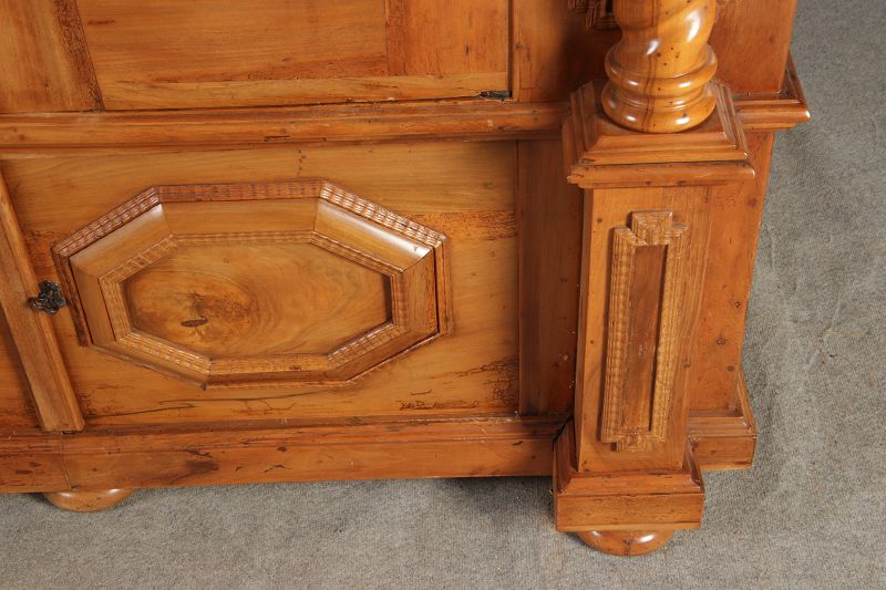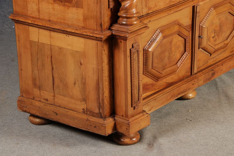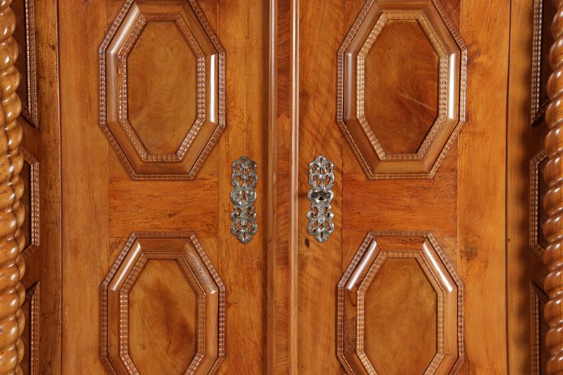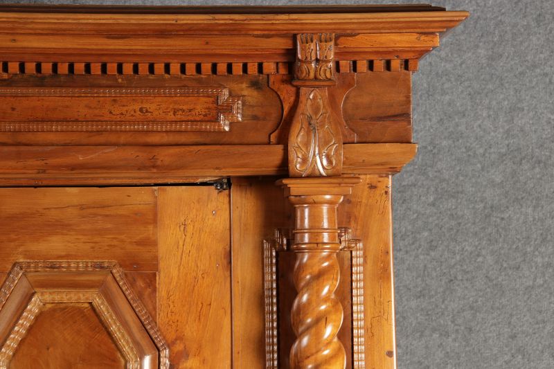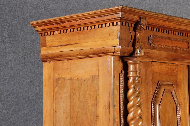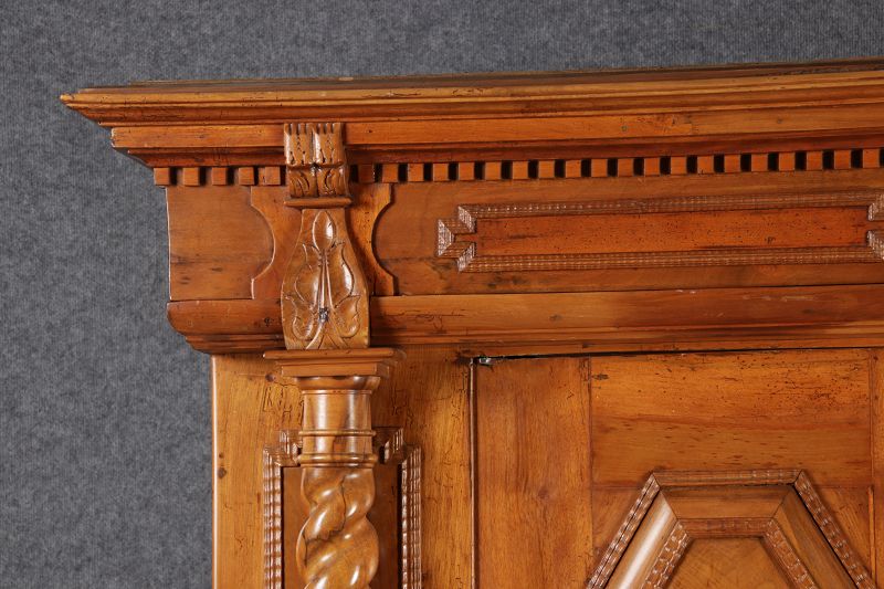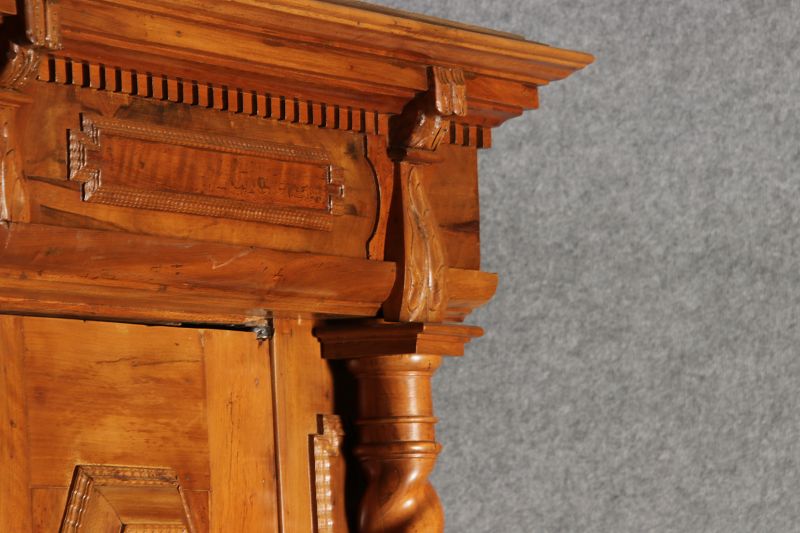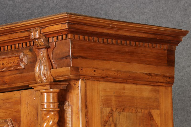 Antiker spät Renaissance früh Barock Schrank um 1700 Nussbaum mit Korkenzieher Säulen |