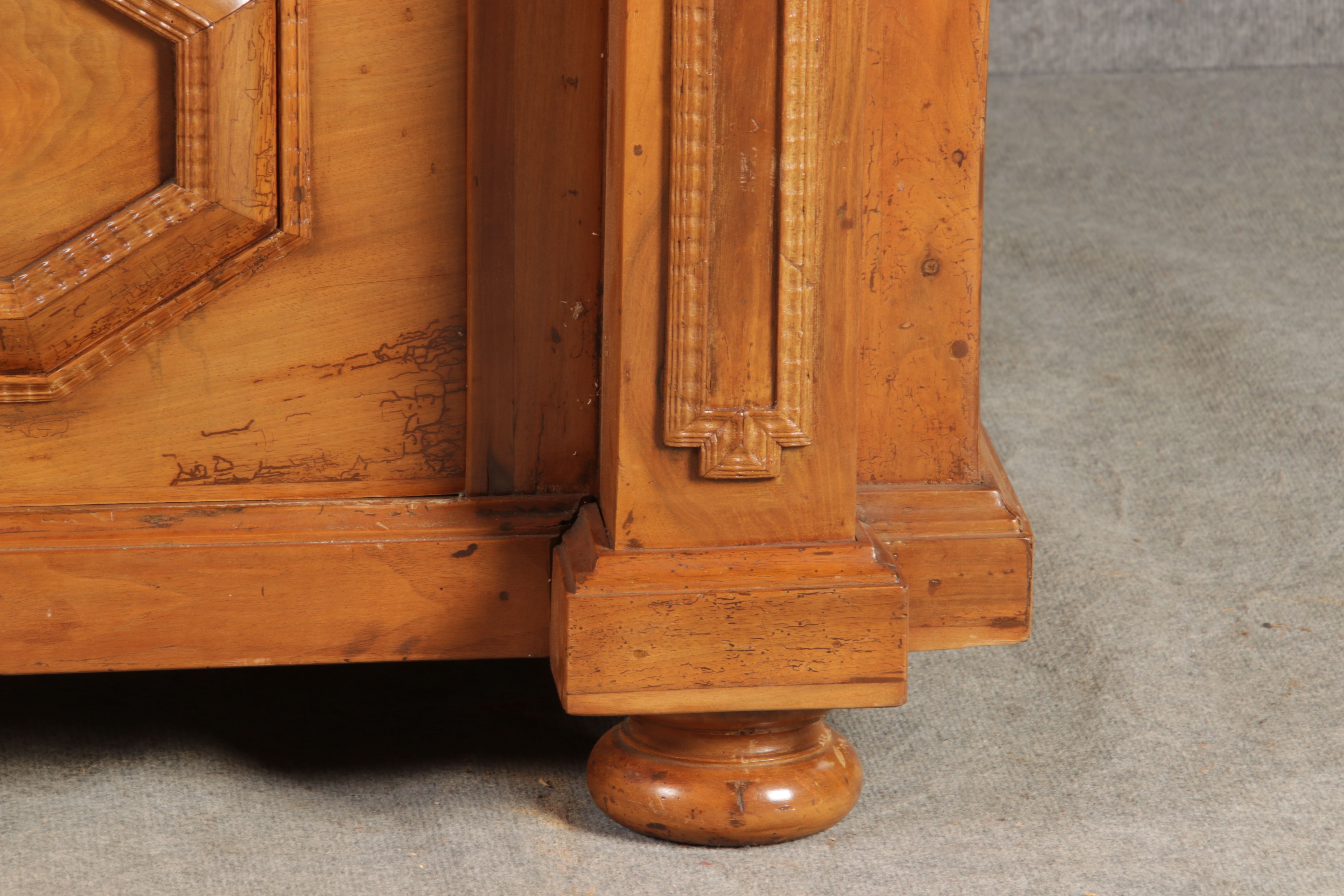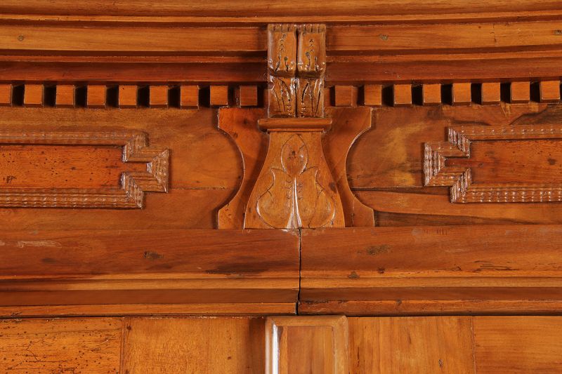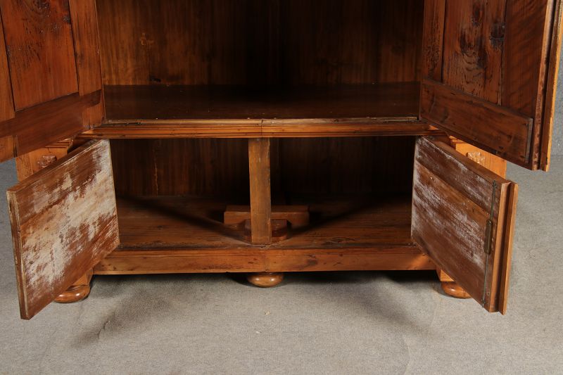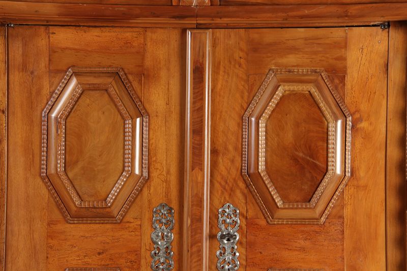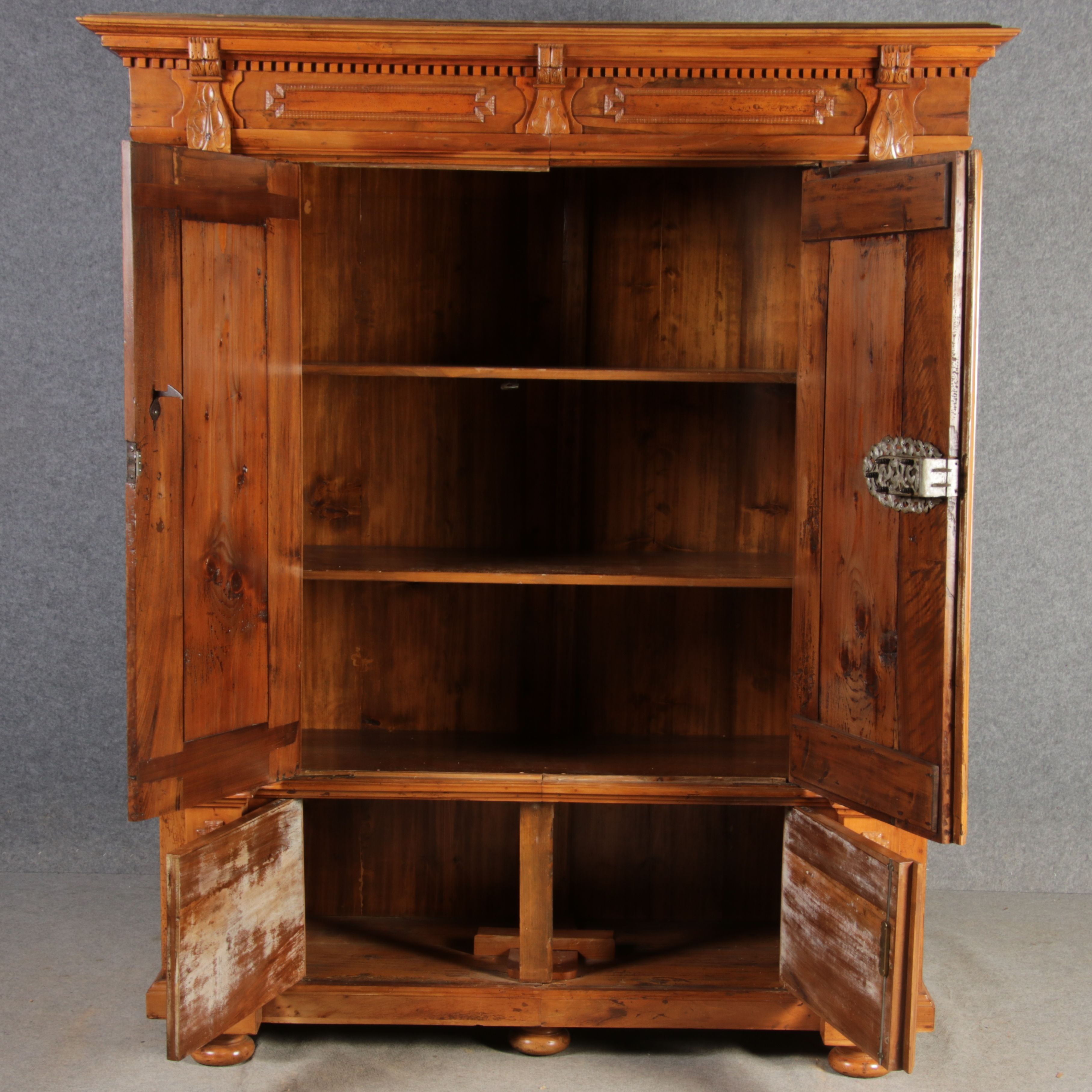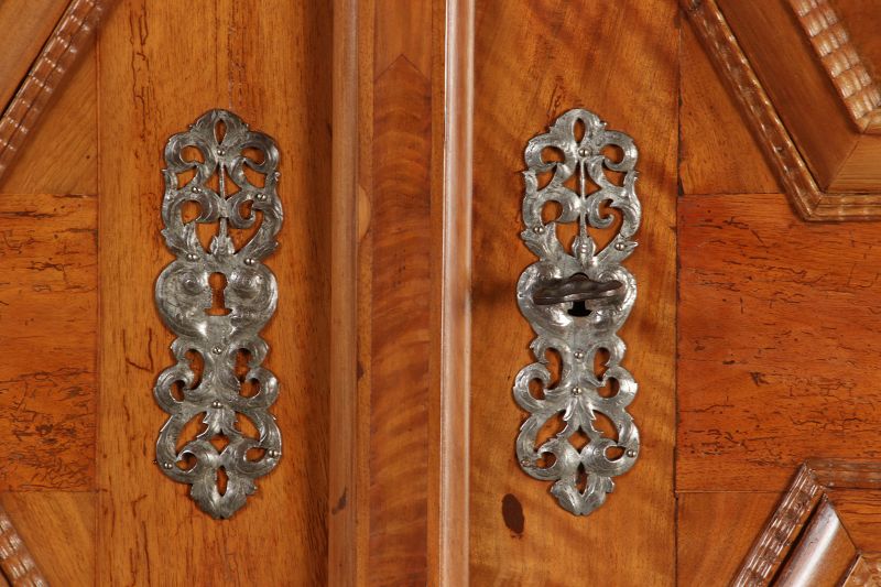 Masse/dimensions: Höhe/Height ca. 218,5 cm, Breite Korpus/Broad Boda ca. 167 cm, Breite Gesims/Broad cornice ca. 189 cm, Tiefe Korpus/Deep body ca. 57 cm, Tiefe Gesims/Deep cornice ca. 73 cm,