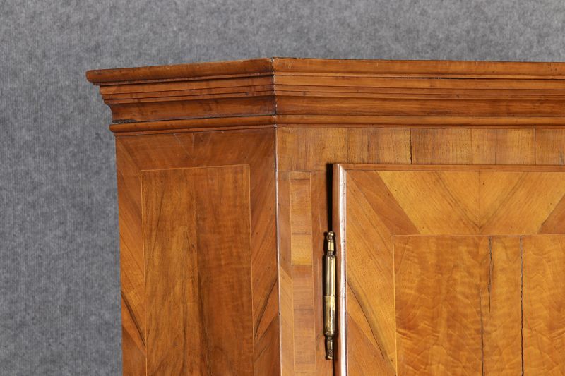 Masse/dimensions: Höhe/Height ca. 74/190 cm, Breite Korpus/Broad Boda ca. 118 cm, Breite Gesims/Broad cornice ca. 131 cm, Tiefe Korpus/Deep body ca. 30 cm, Tiefe Gesims/Deep cornice ca. 42 cm, Holz, Schlüssel/wood,