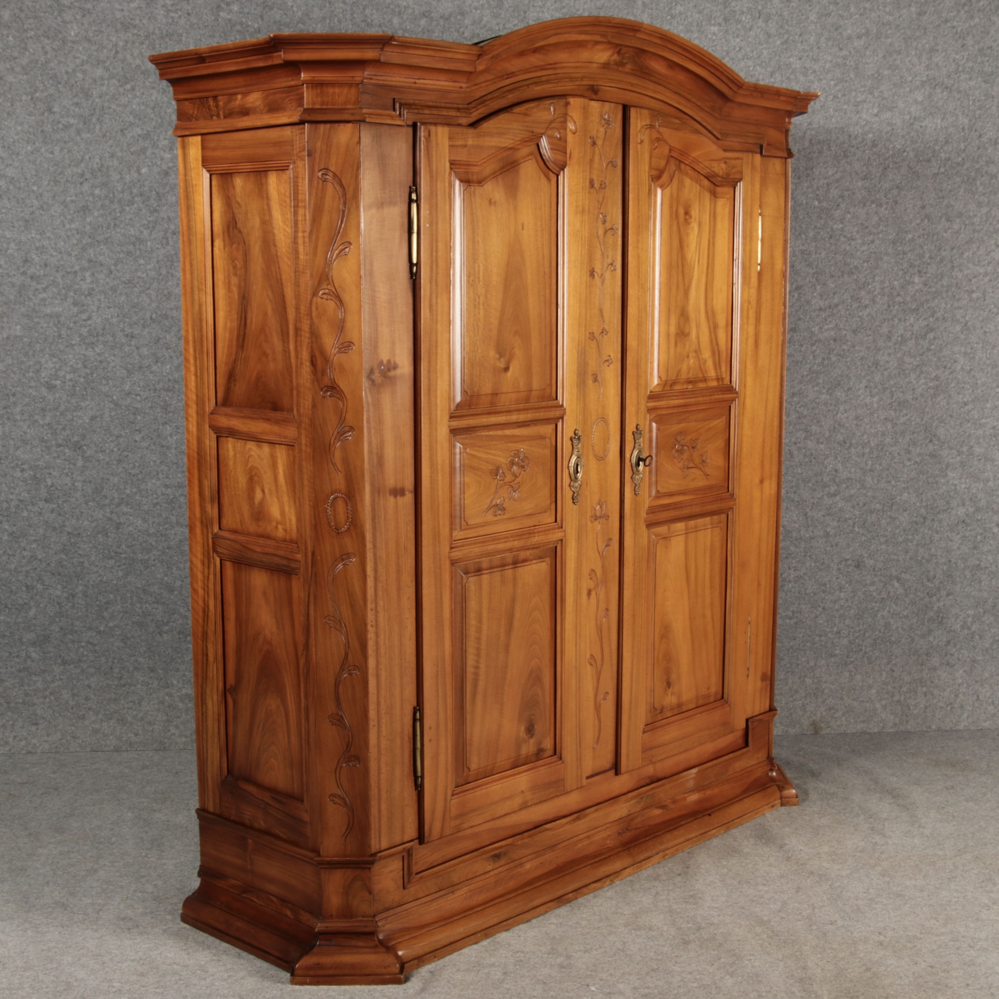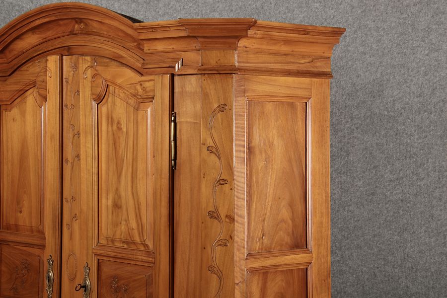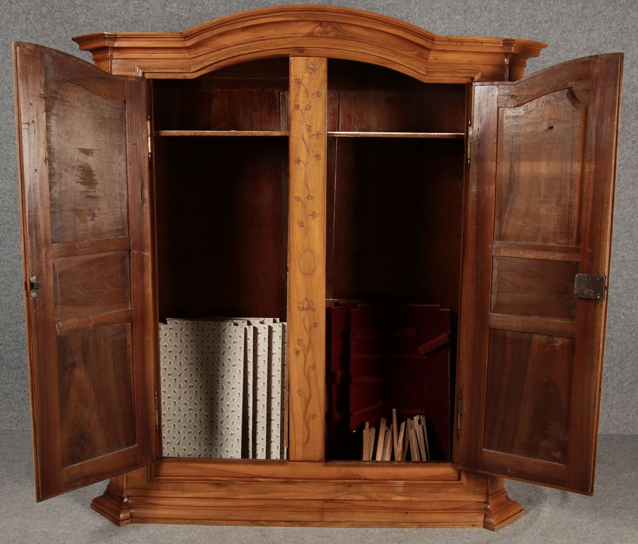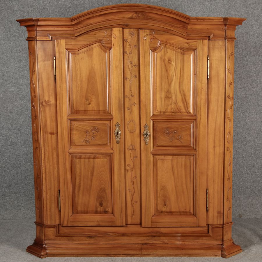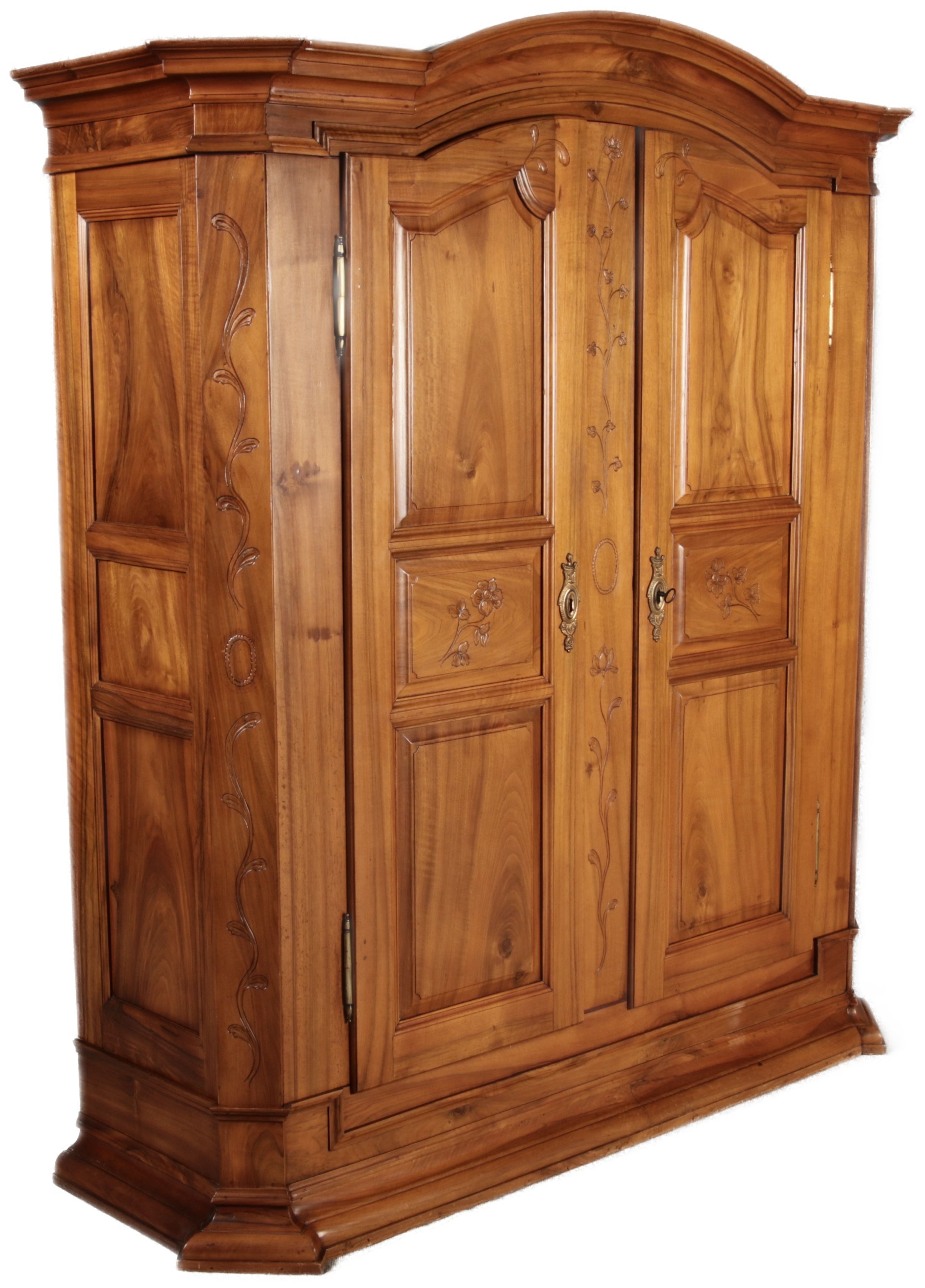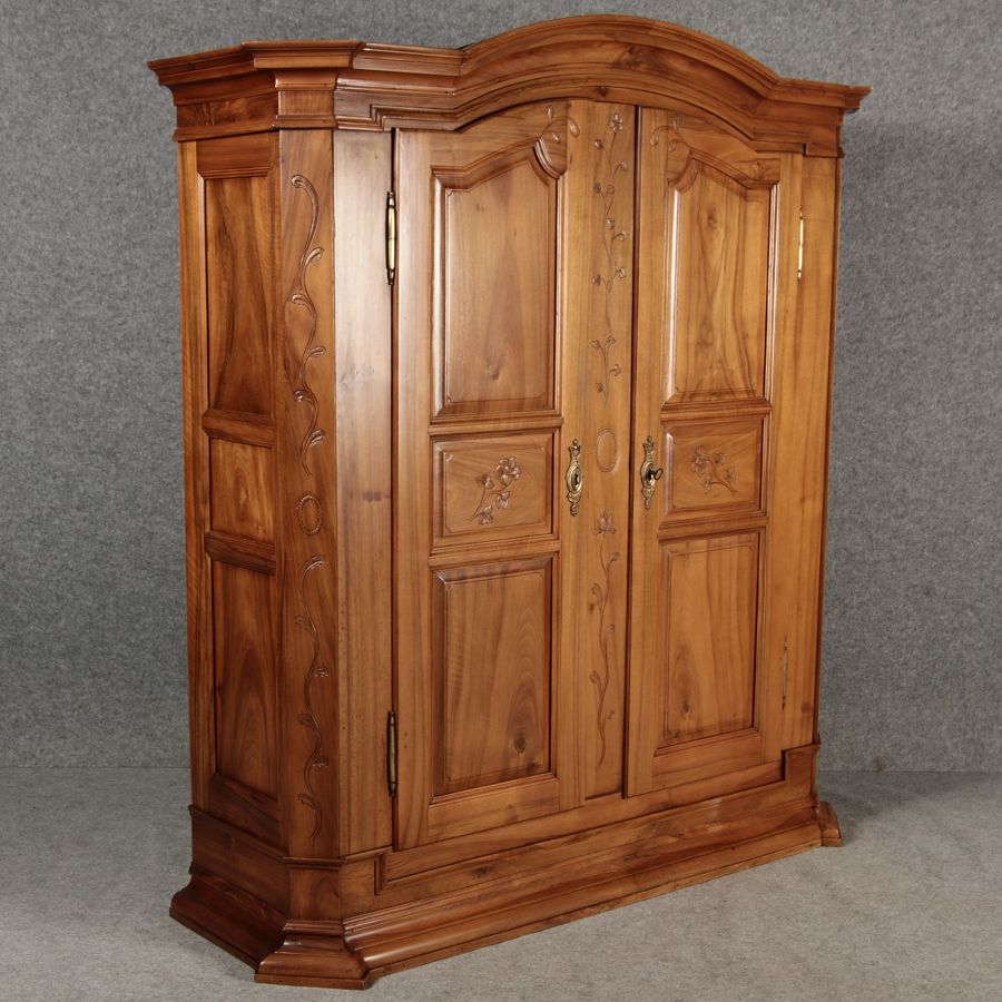 Antiker Barockschrank massiv Nussbaum mit Schnitzereien um 1800 |