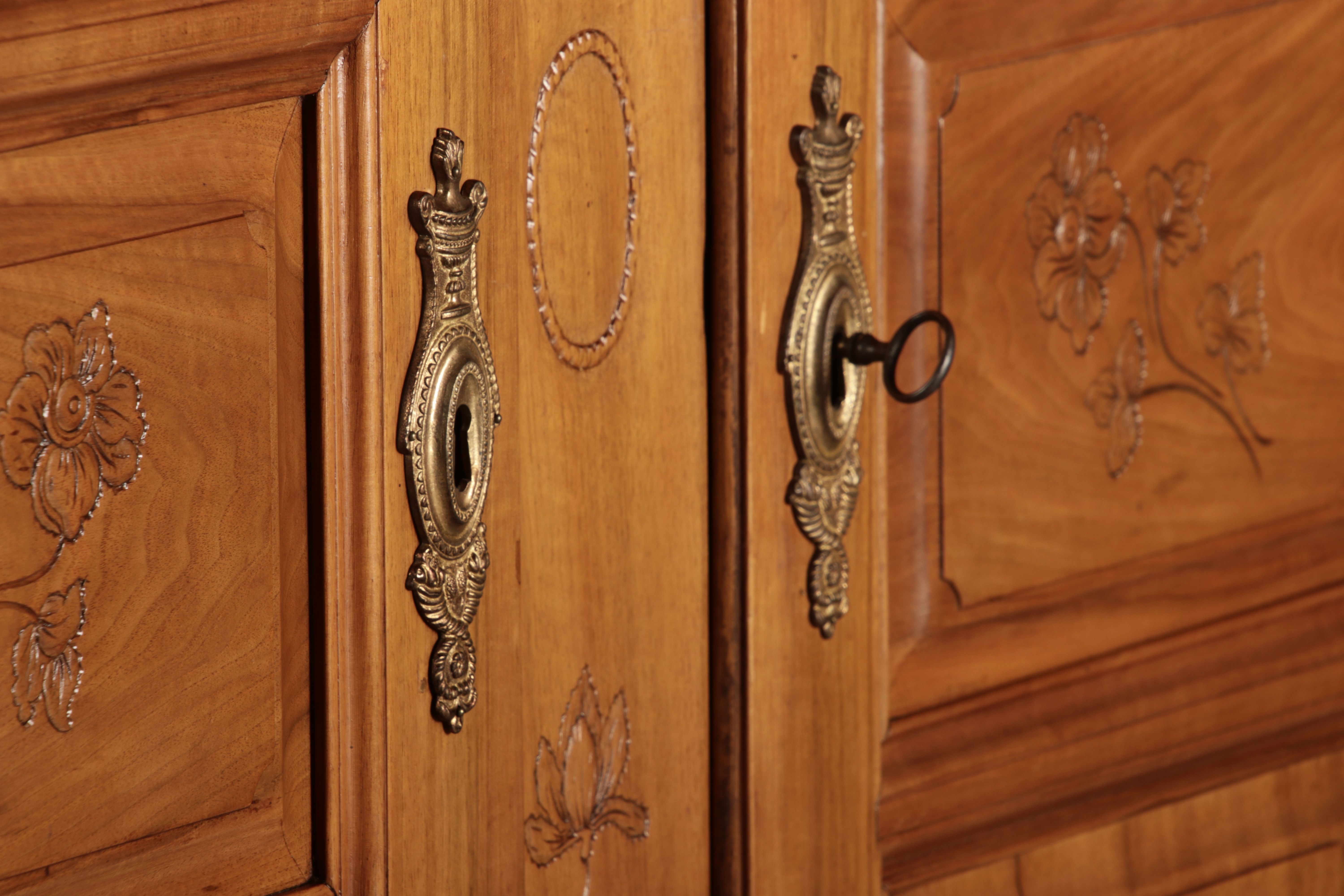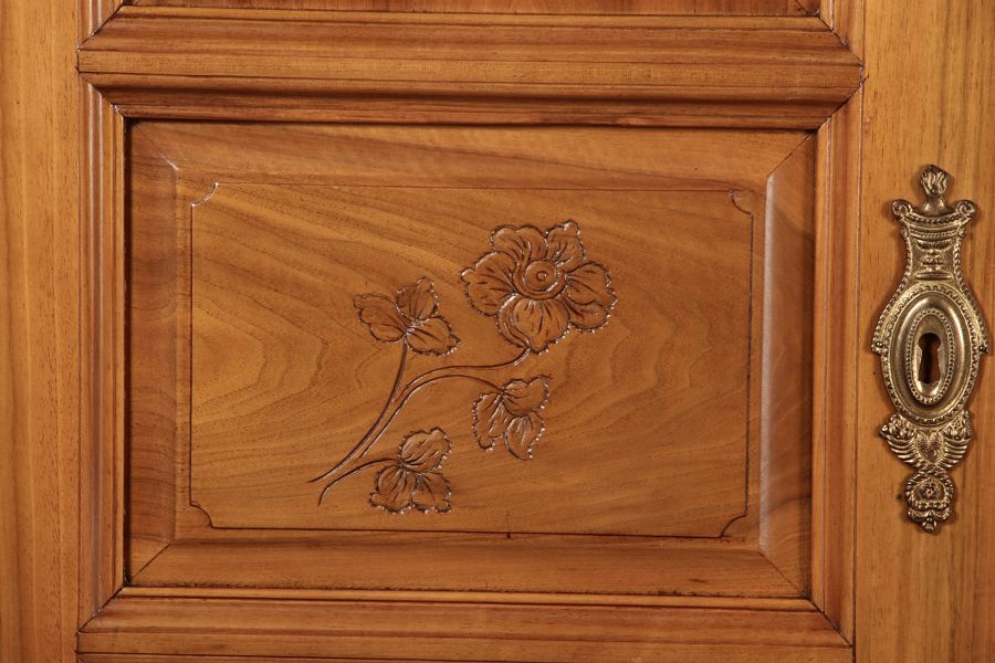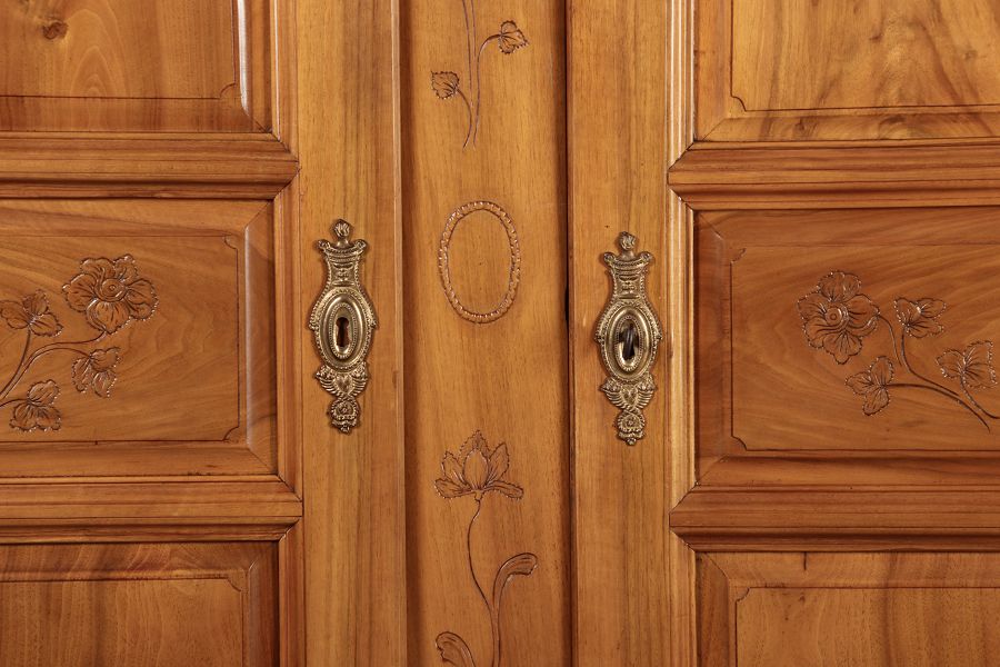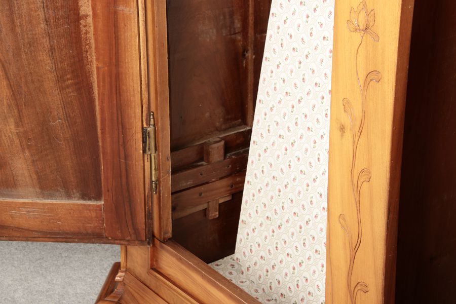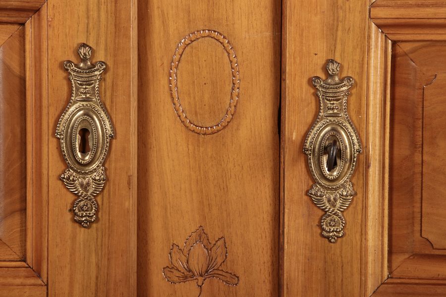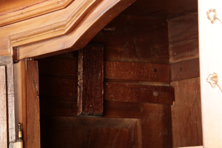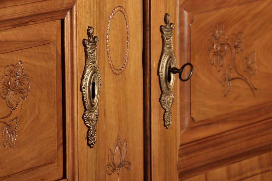 Antiker Barockschrank massiv Nussbaum mit Schnitzereien um 1800 |