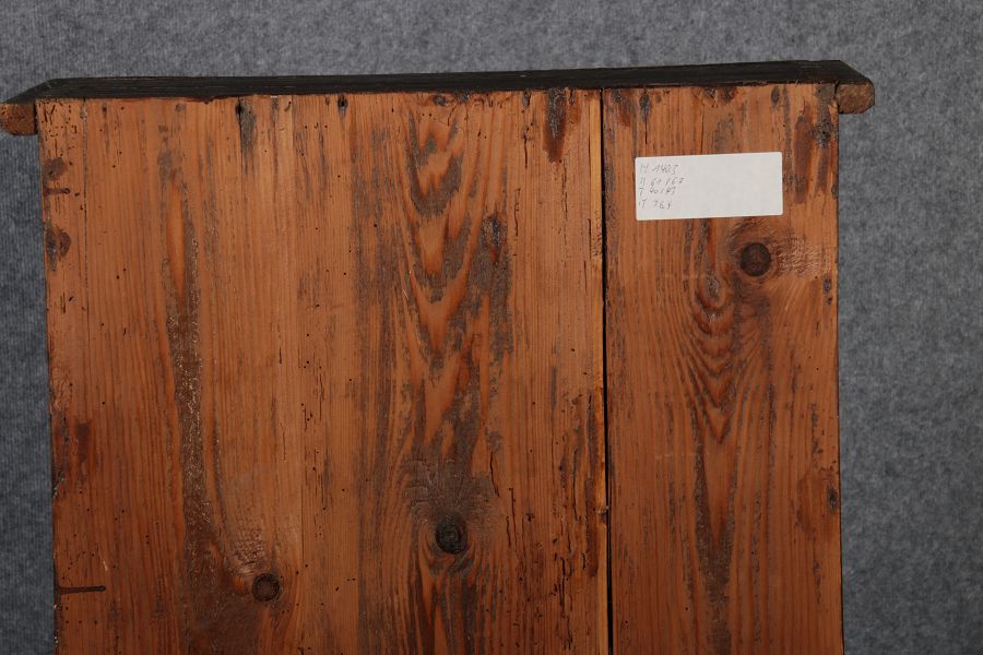 Masse/dimensions: Höhe/Height ca. 140,5 cm, Breite Korpus/Broad Boda ca. 61 cm, Breite Gesims/Broad cornice ca. 67 cm, Tiefe Korpus/Deep body ca. 40 cm, Tiefe Gesims/Deep cornice ca. 43 cm,