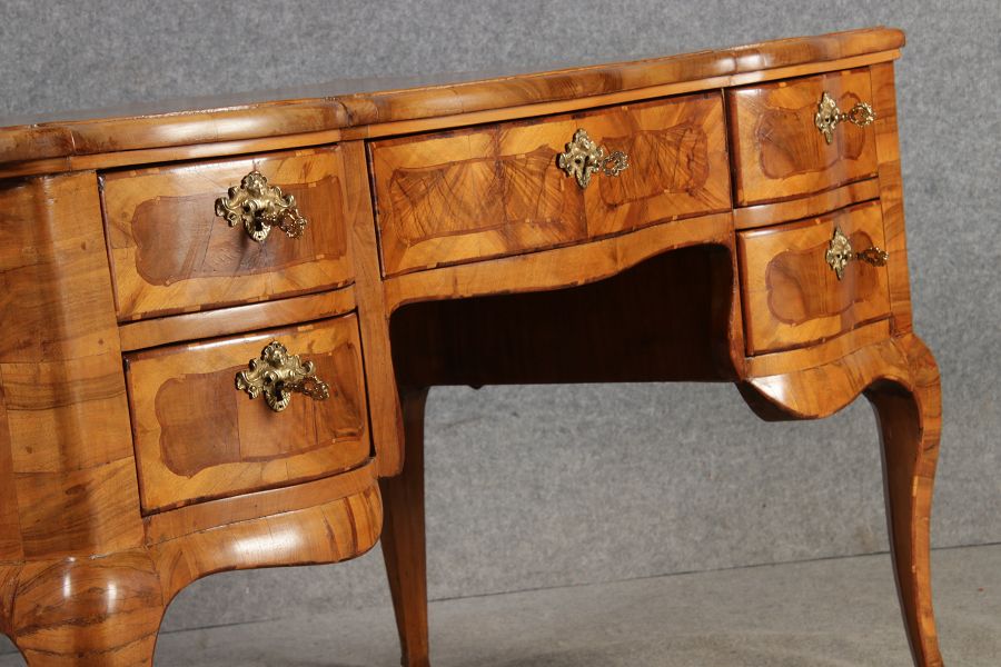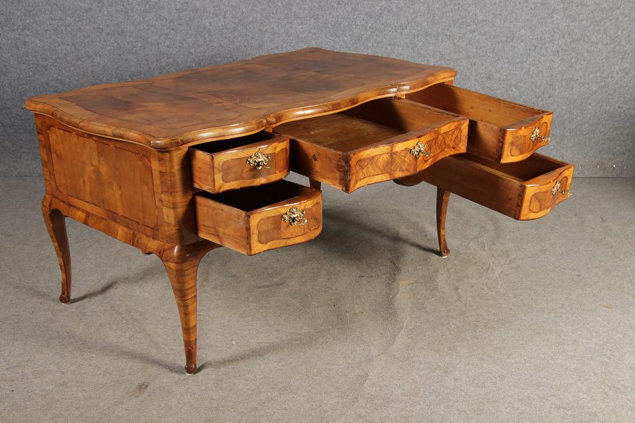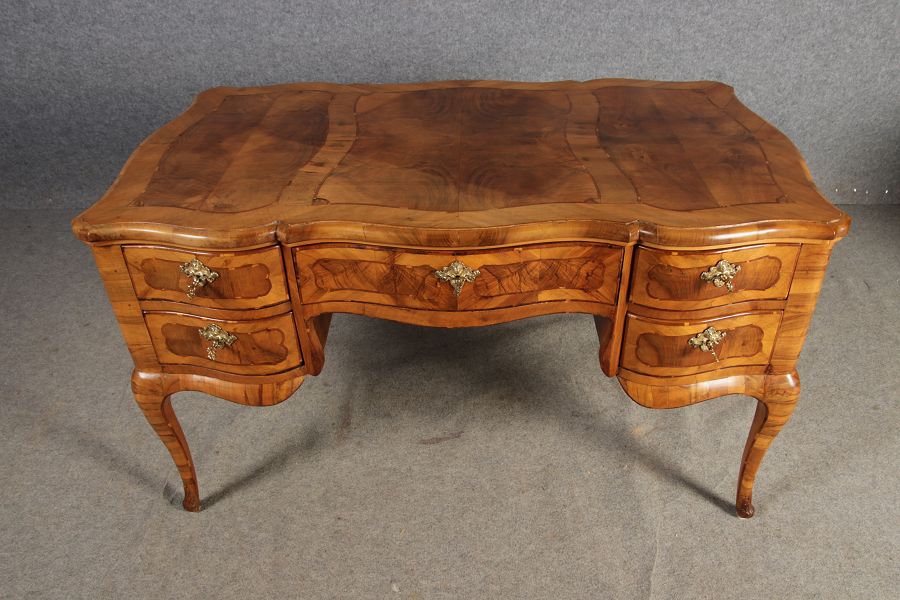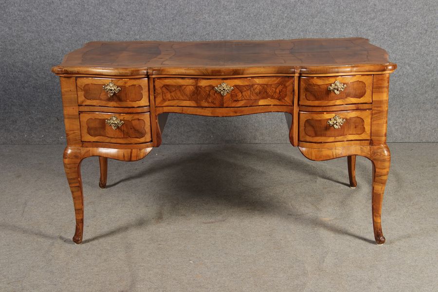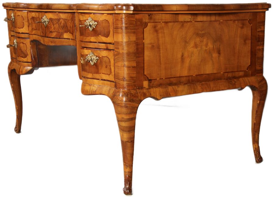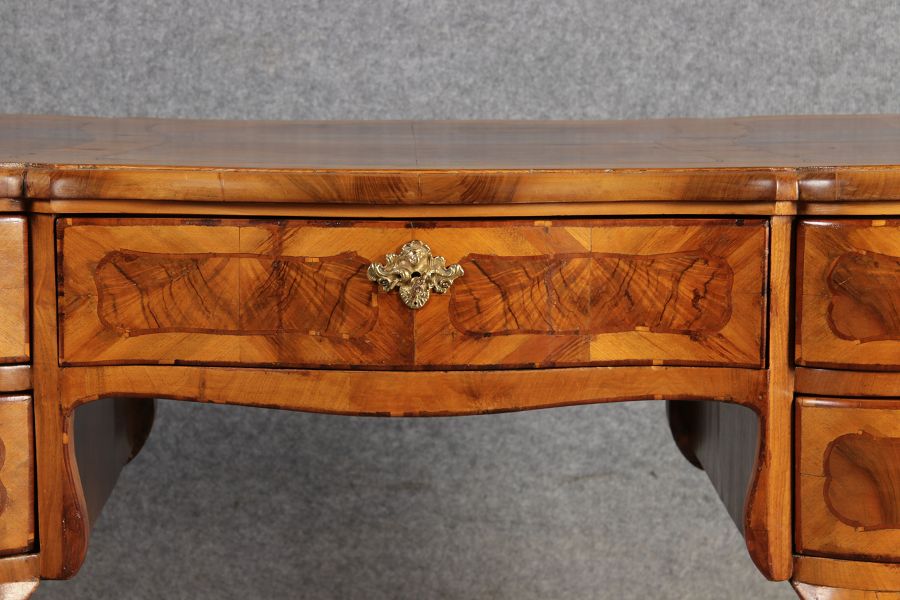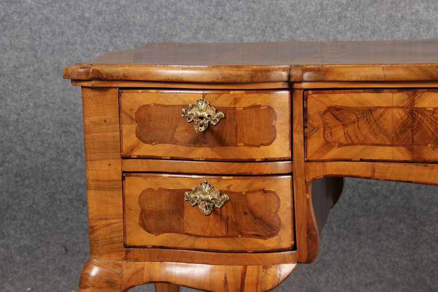 Antiker Barock Schreibtisch 18 Jh. Nussbaum Intarsien | ||