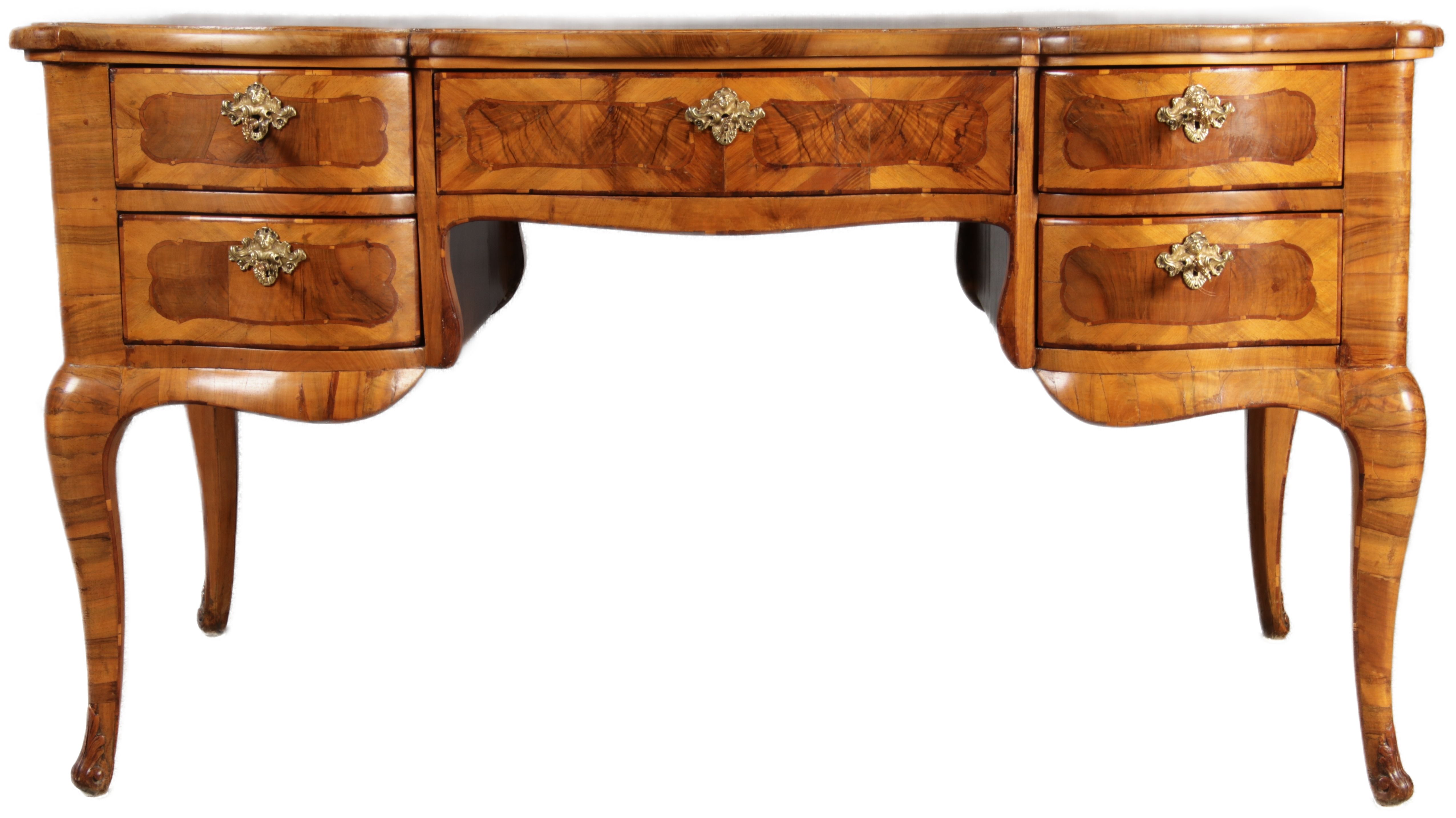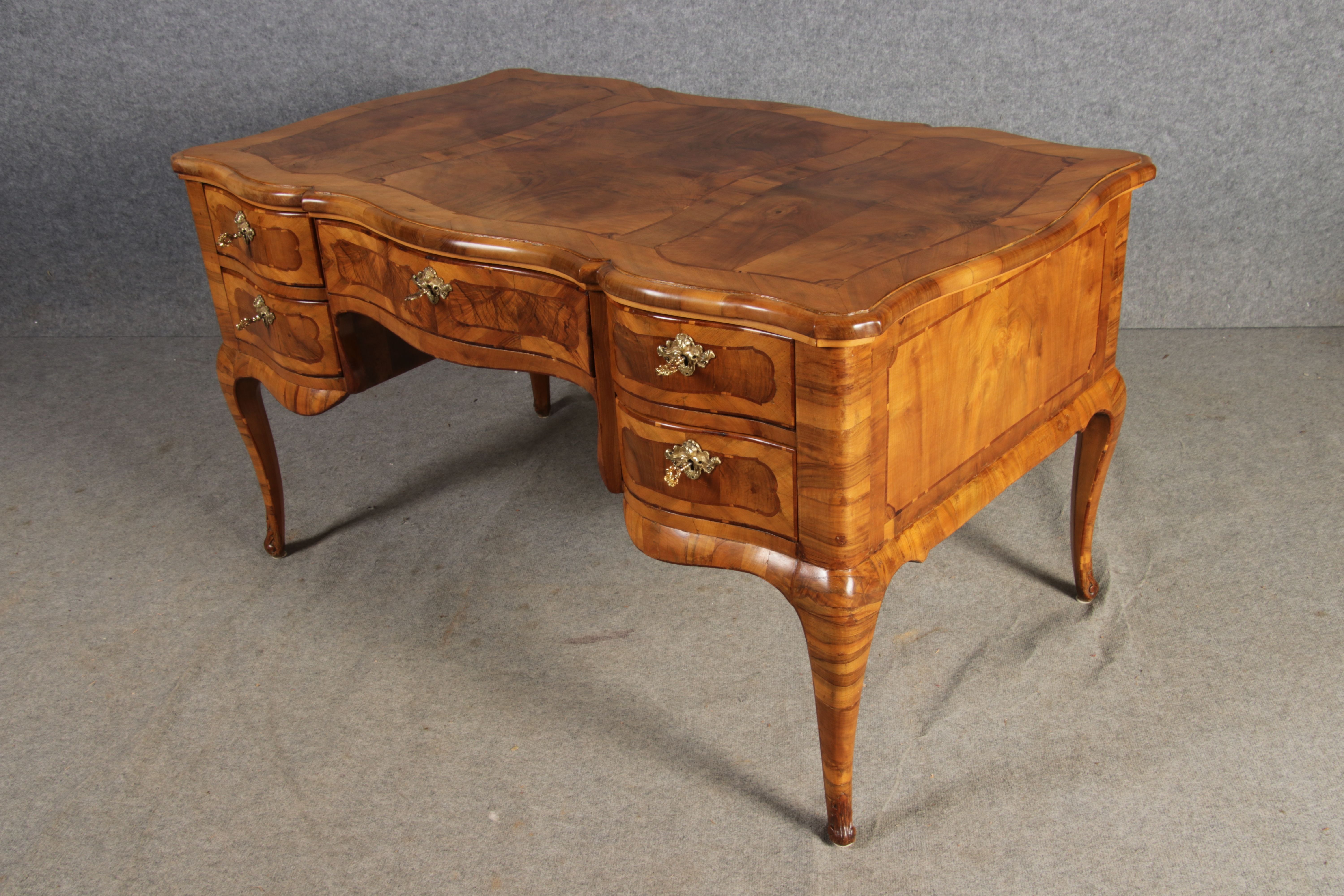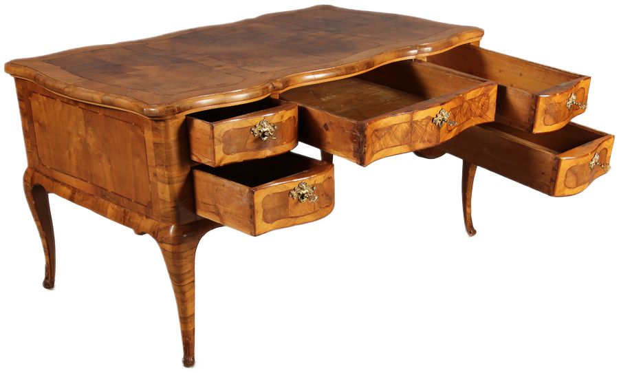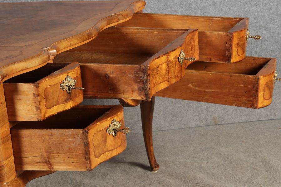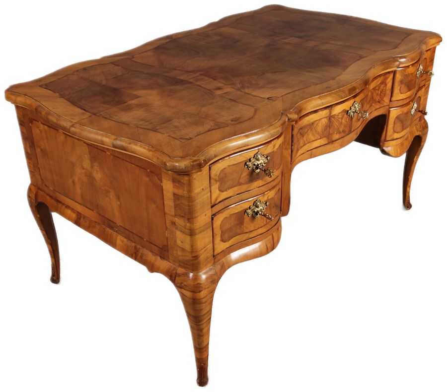 Antiker Barock Schreibtisch 18 Jh. Nussbaum Intarsien | ||