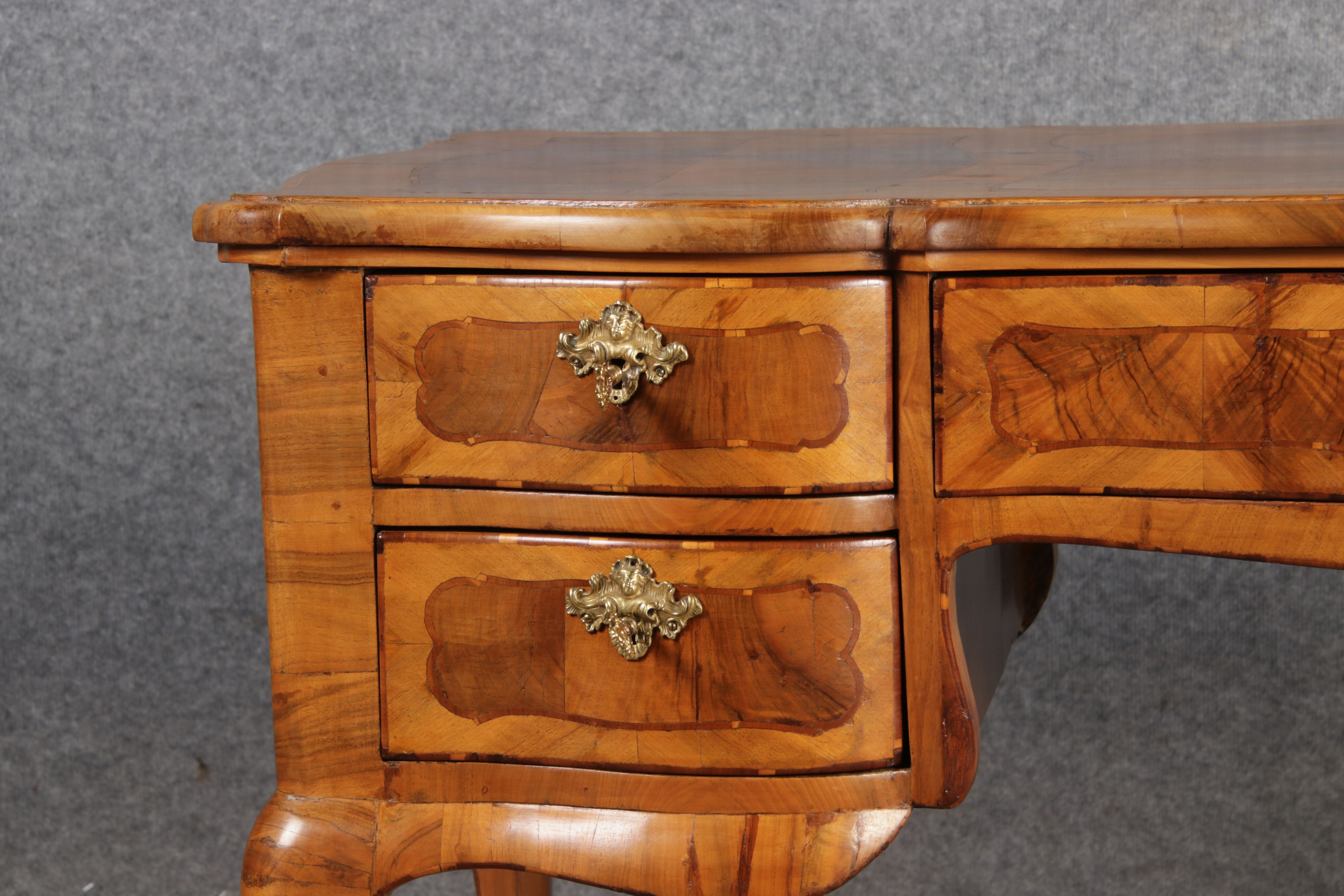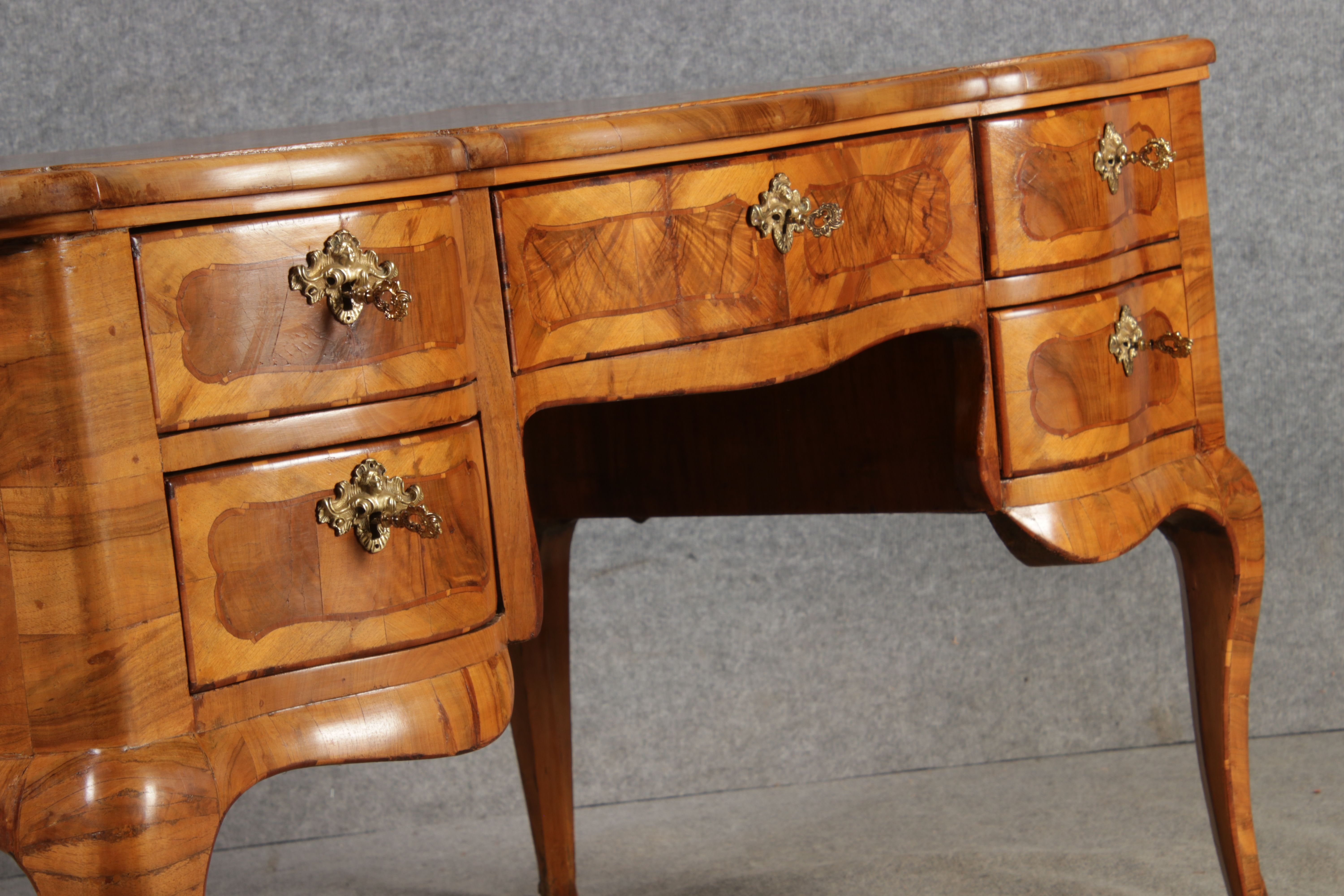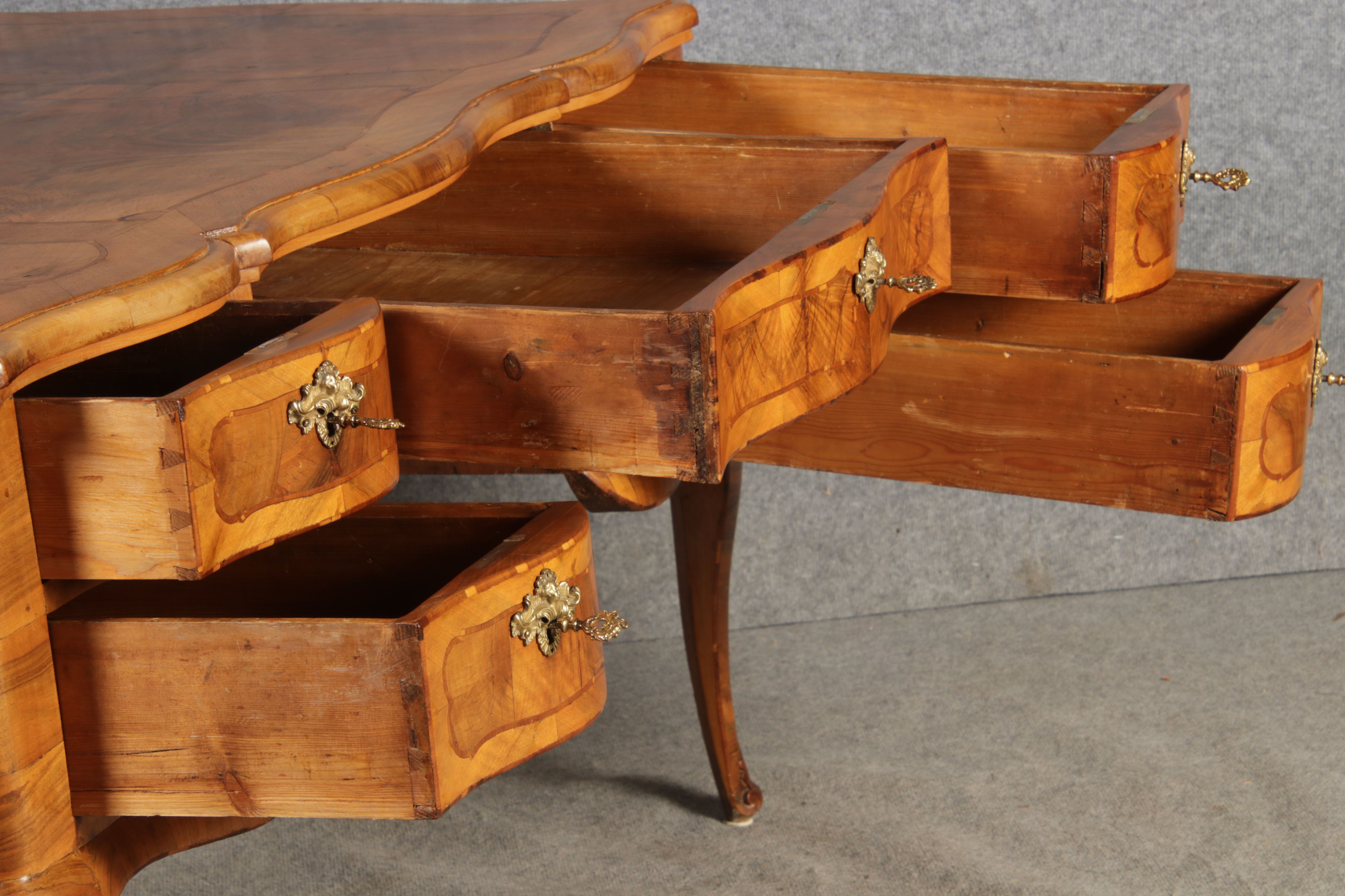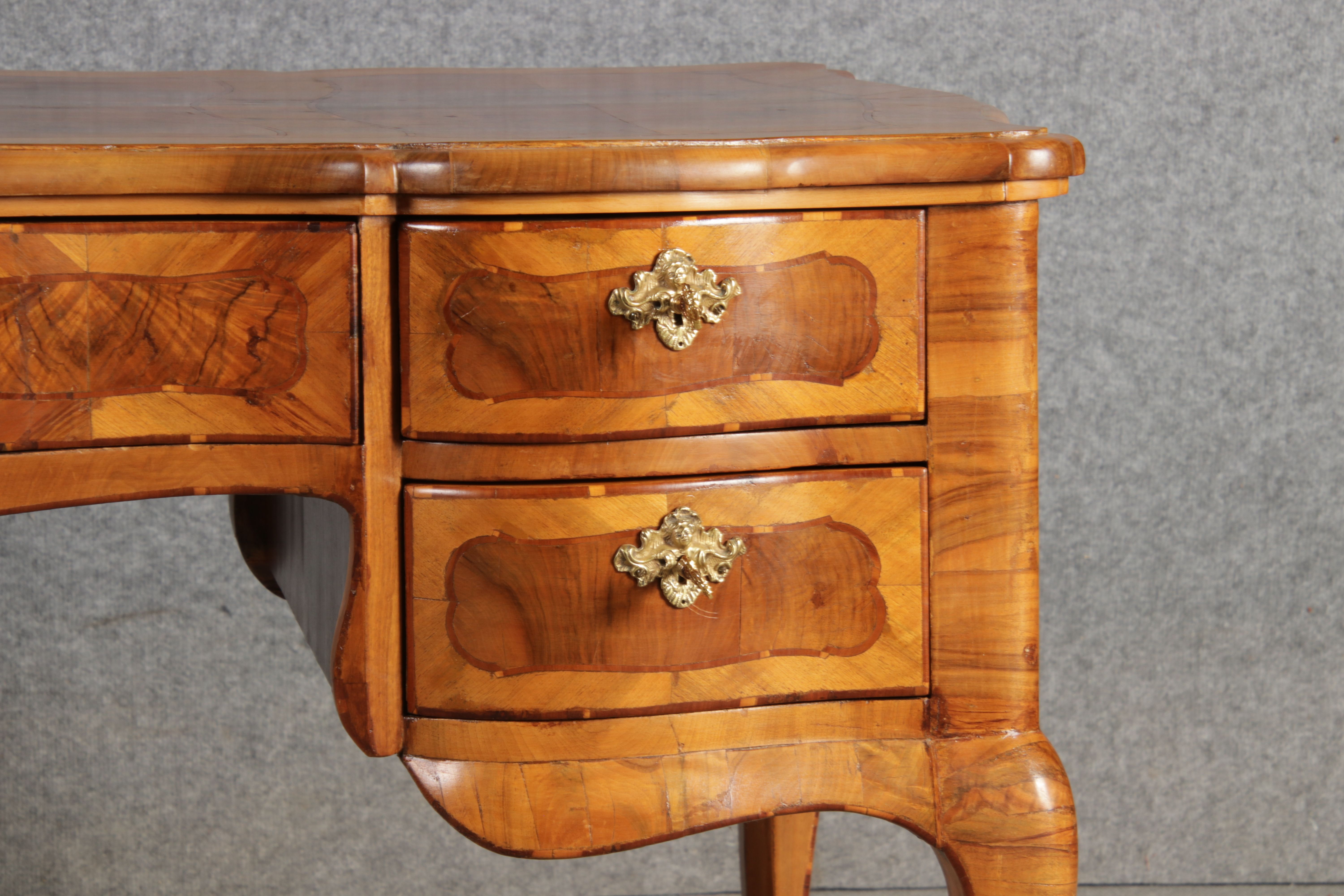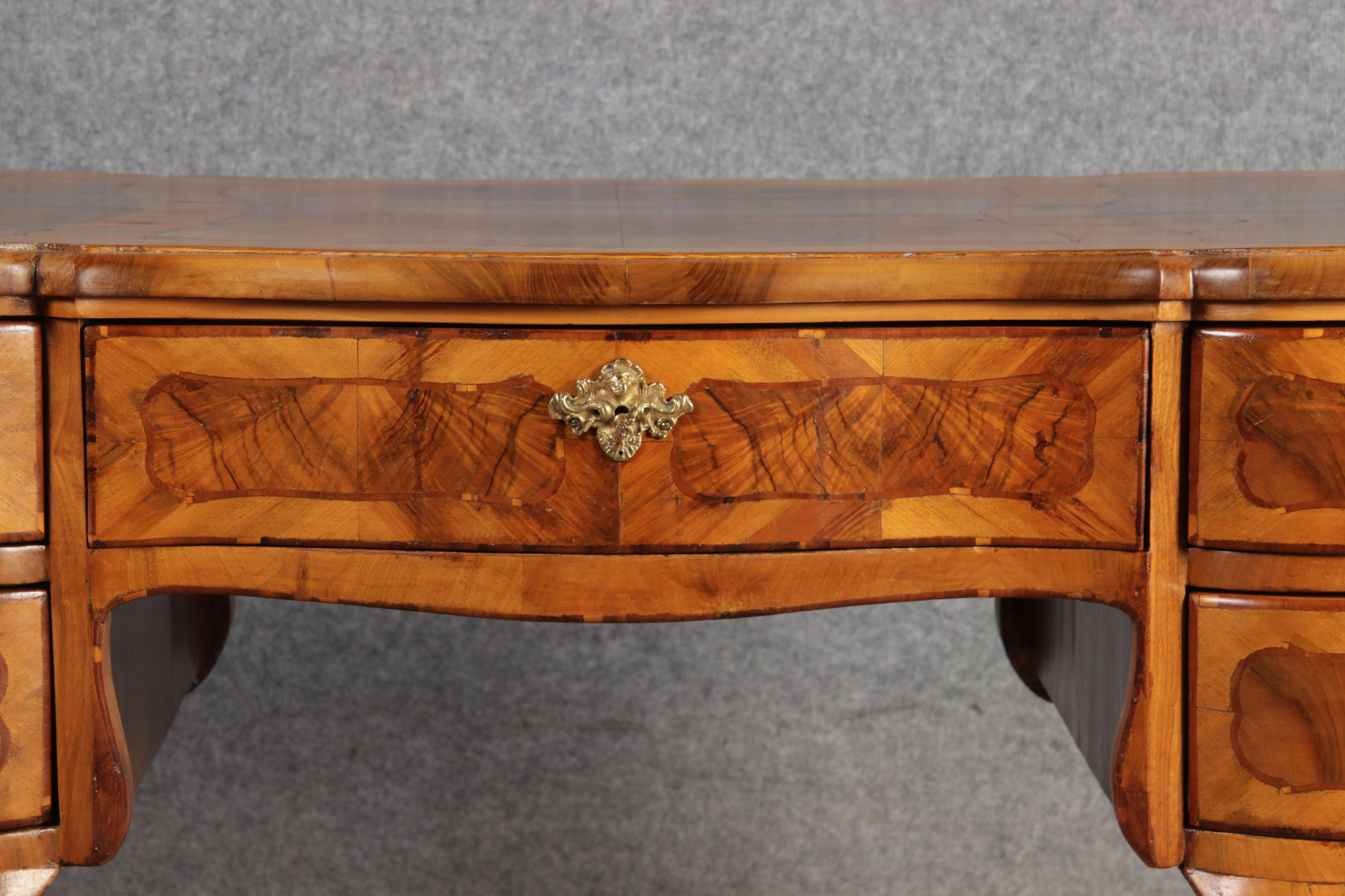 Antiker Barock Schreibtisch 18 Jh. Nussbaum Intarsien |