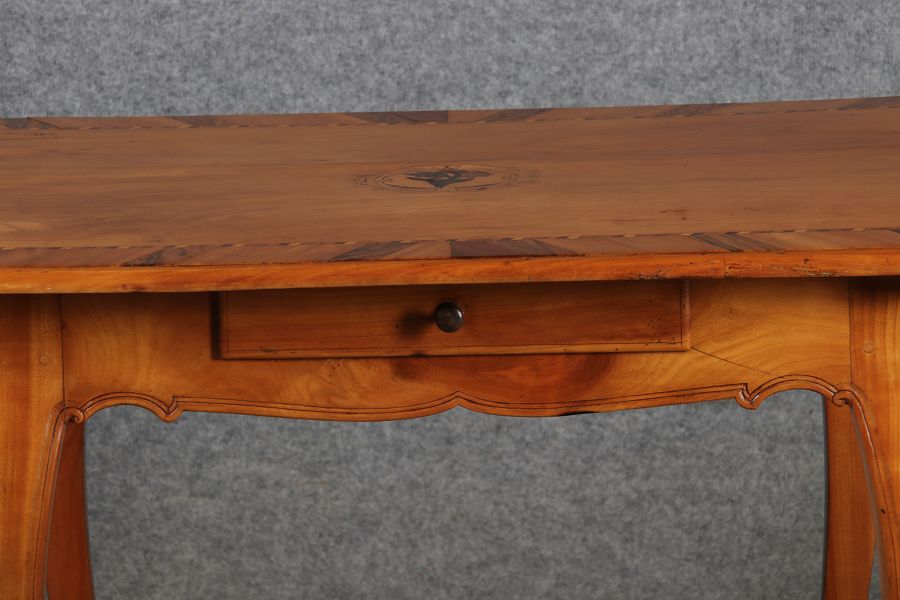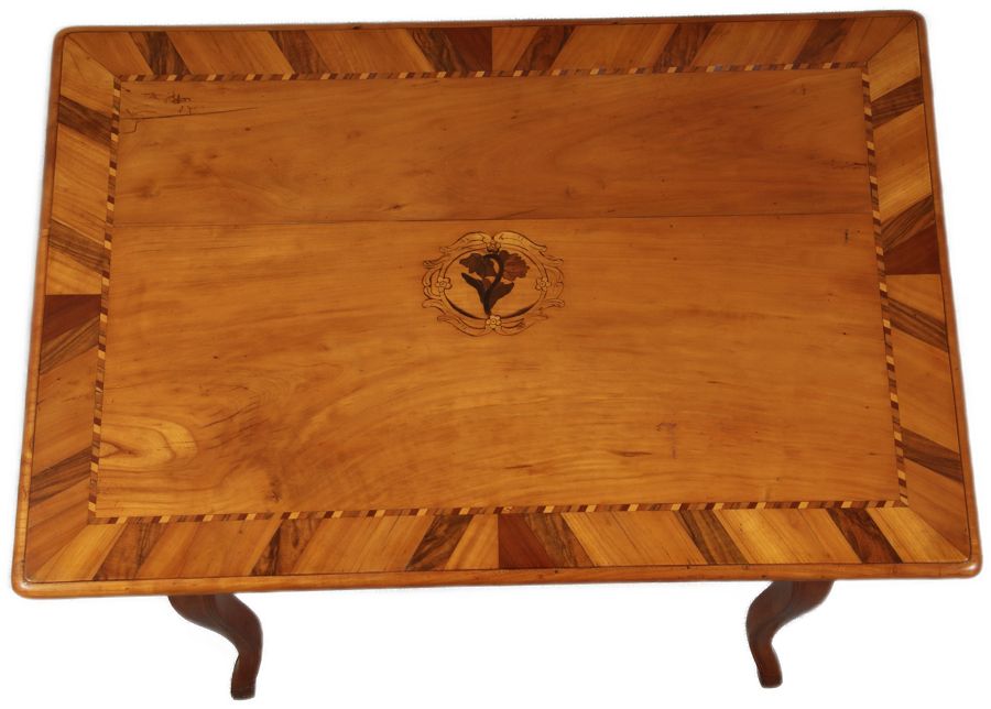 Antiker Kleiner Barock Schreibtisch Beistelltisch Kirschbaum Nussbaum mit Einlegearbeiten 18/19 Jh. |