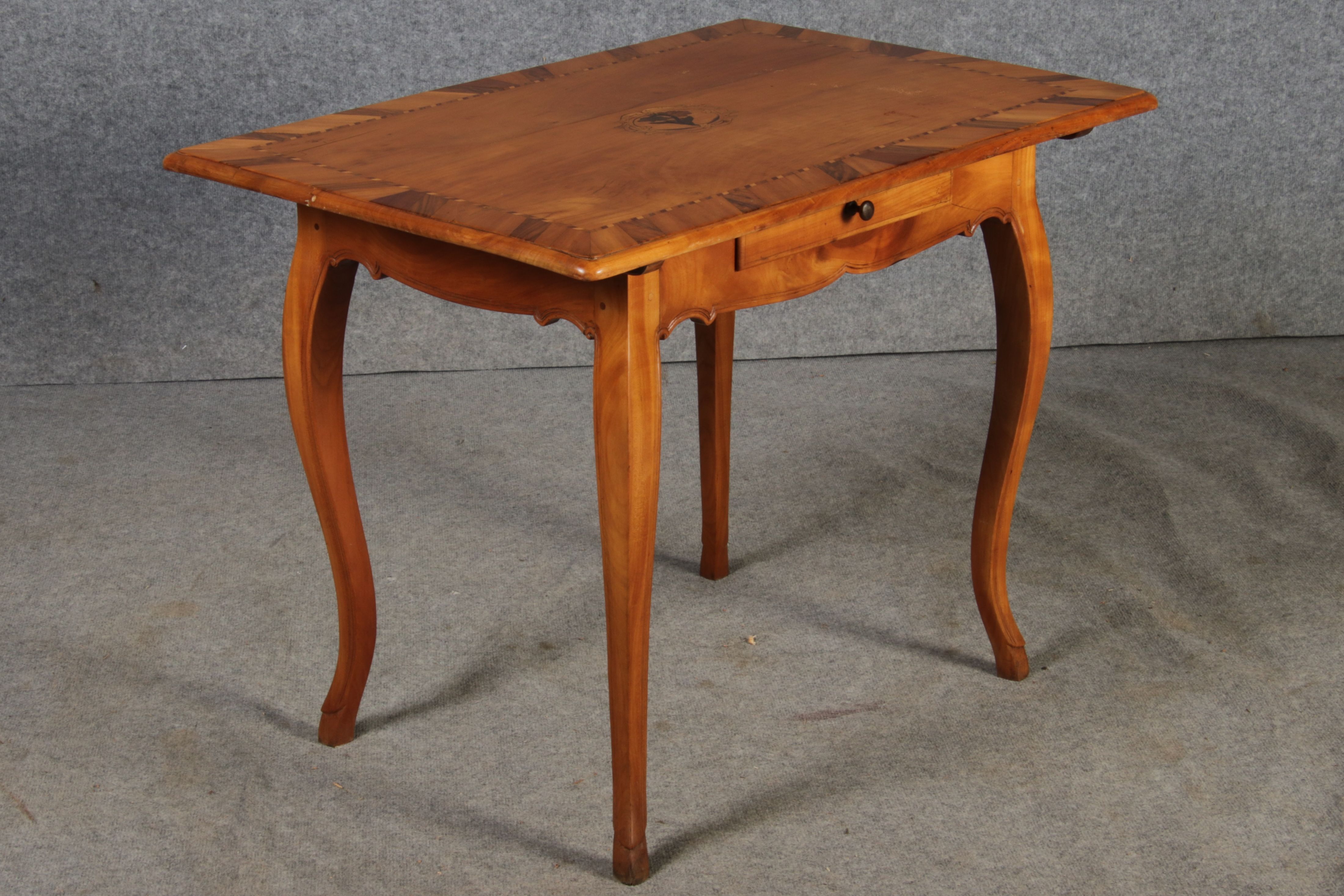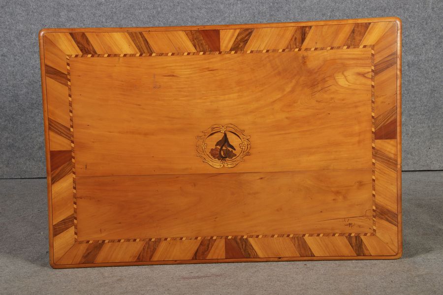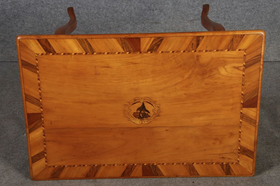 Antiker Kleiner Barock Schreibtisch Beistelltisch Kirschbaum Nussbaum mit Einlegearbeiten 18/19 Jh. | ||