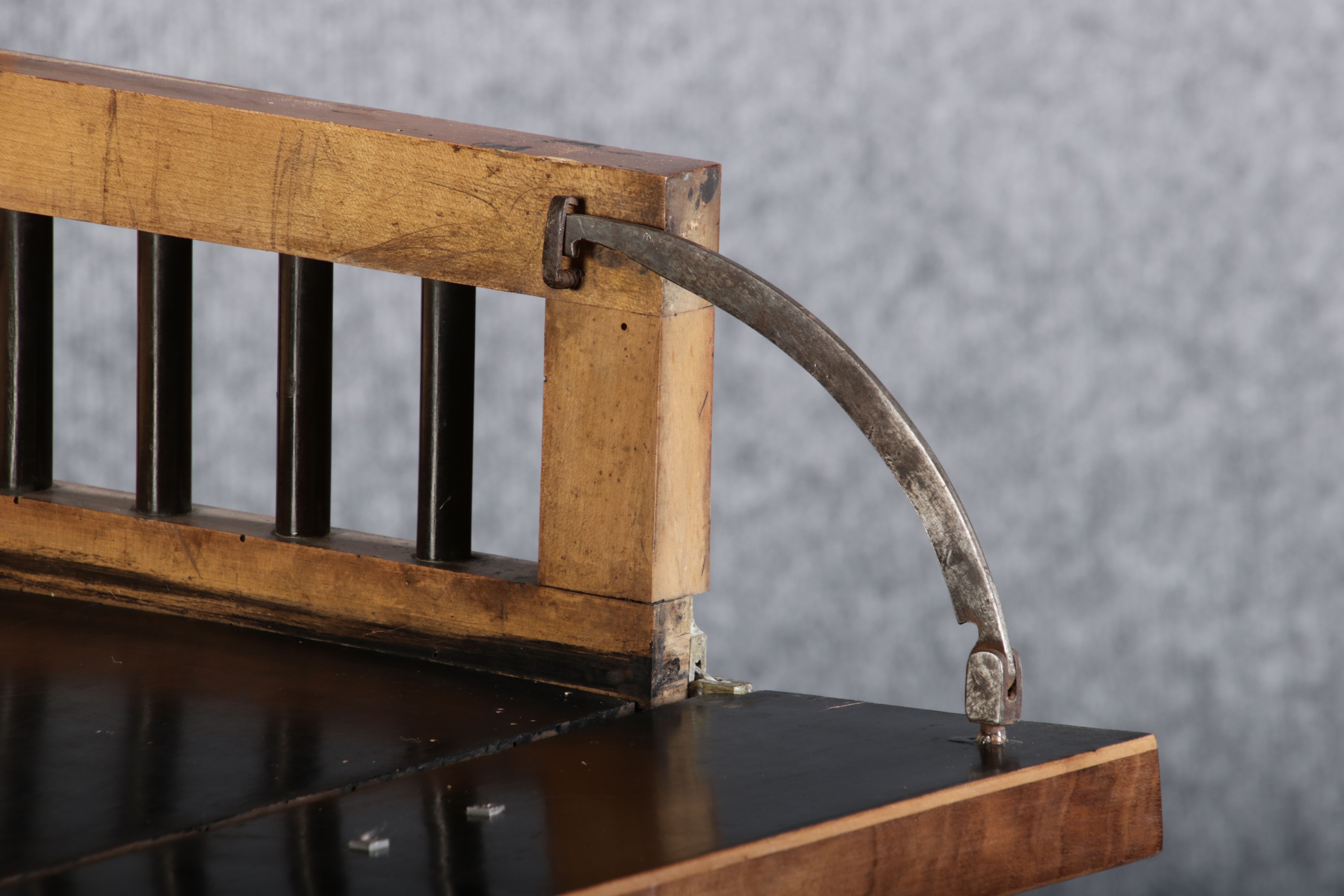 Masse/dimensions: Höhe/Height ca. 98,5 cm, Breite /Broad ca. 128 cm, Tiefe /Deep ca. 61,5 cm, Schreibplattenhöhe/writing tablet height ca. 81 cm.