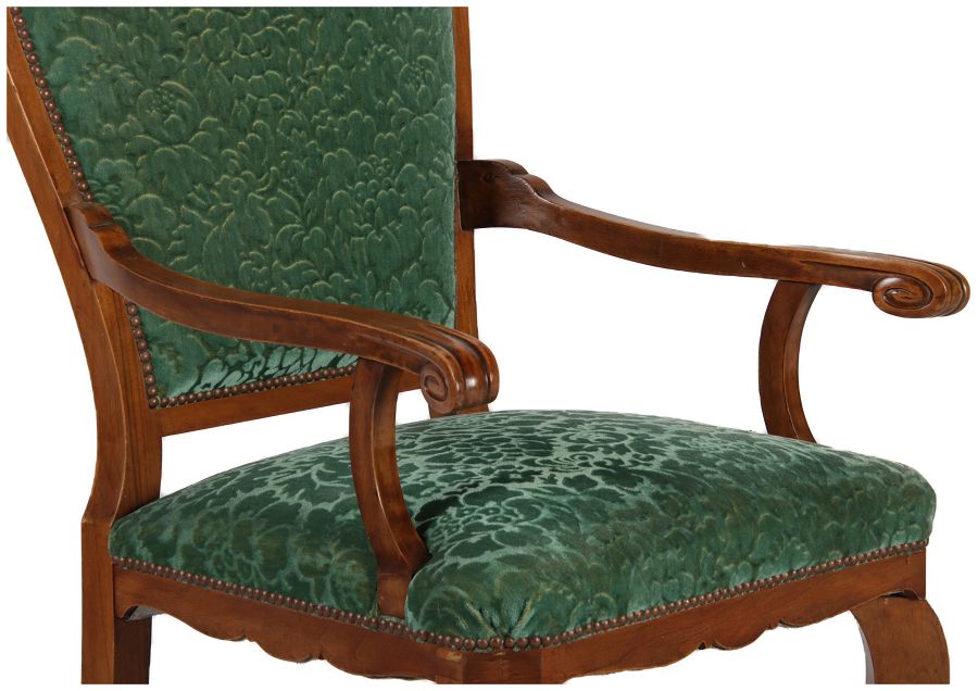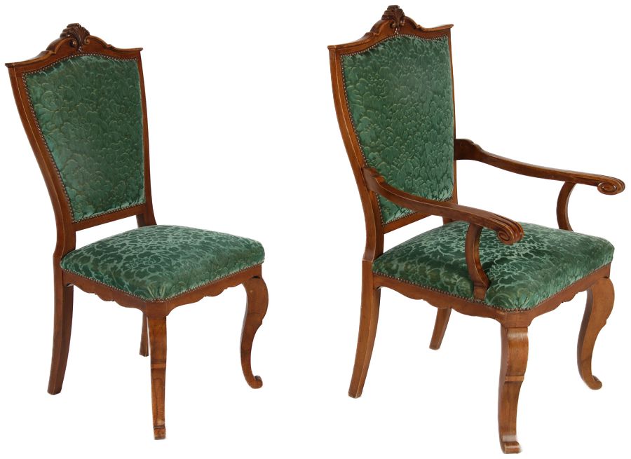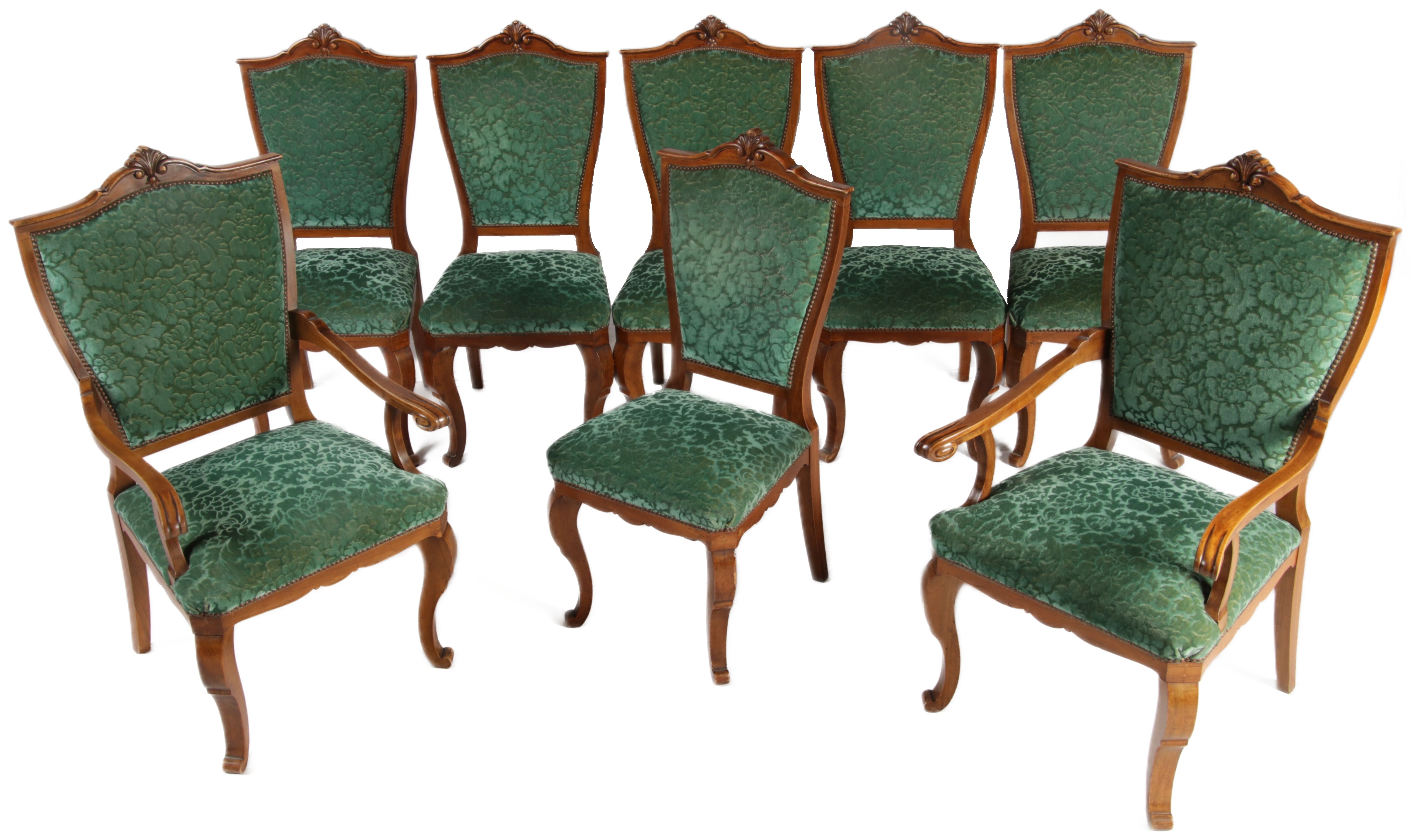 Antiker Achtersatz Stühle 2 Sesel und 6 Stühle. Viktorianisch zweite Hälfte 19 Jh. Nussbaum. |