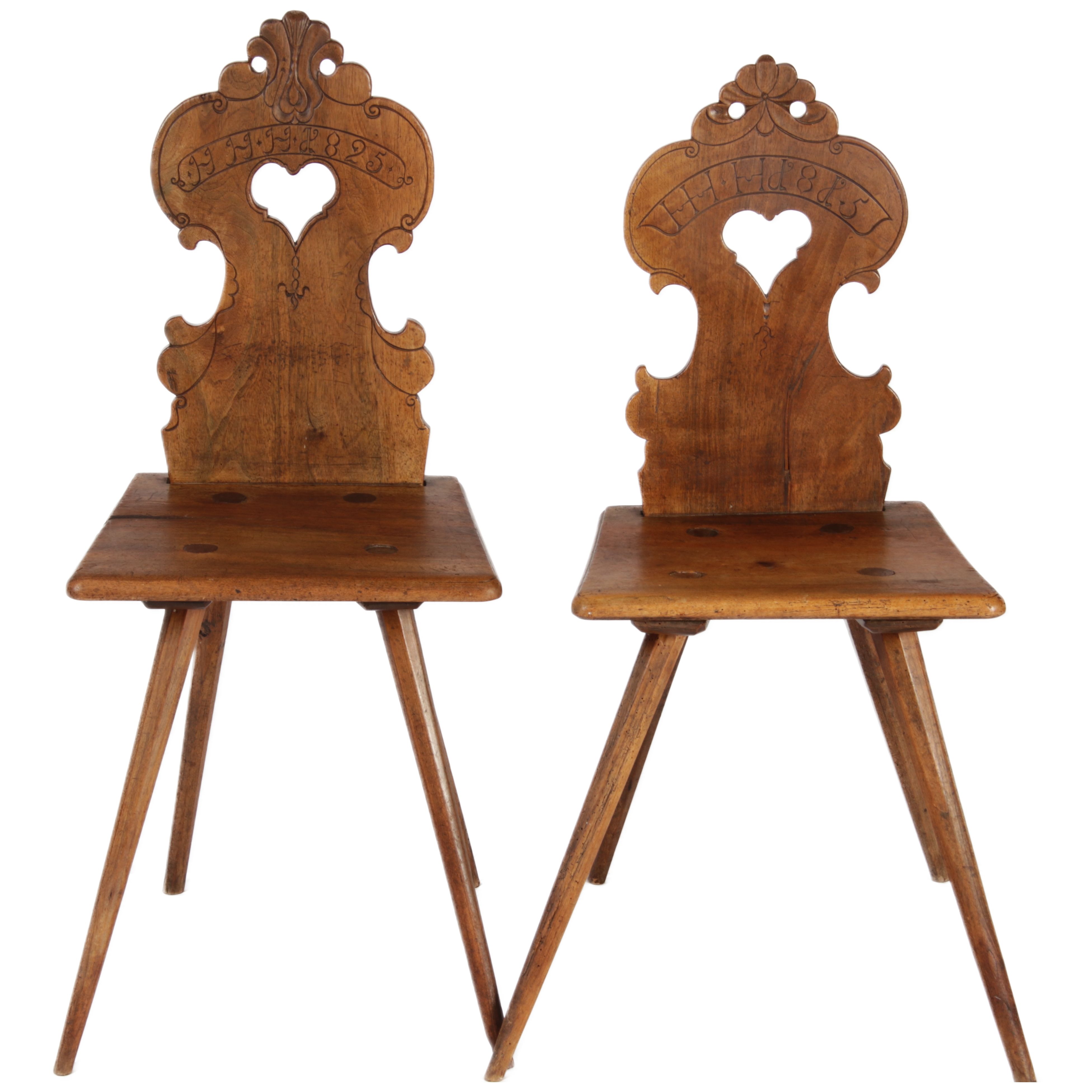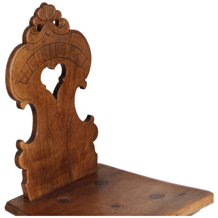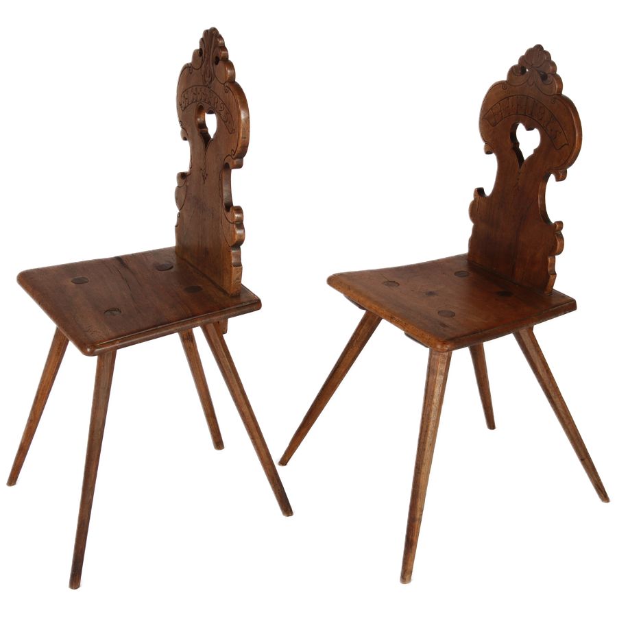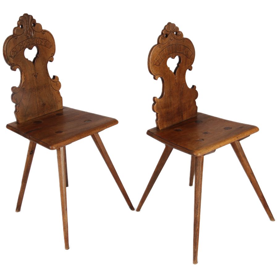 2 Antike Brettstühle Datiert 1815/25 Nussbaum |