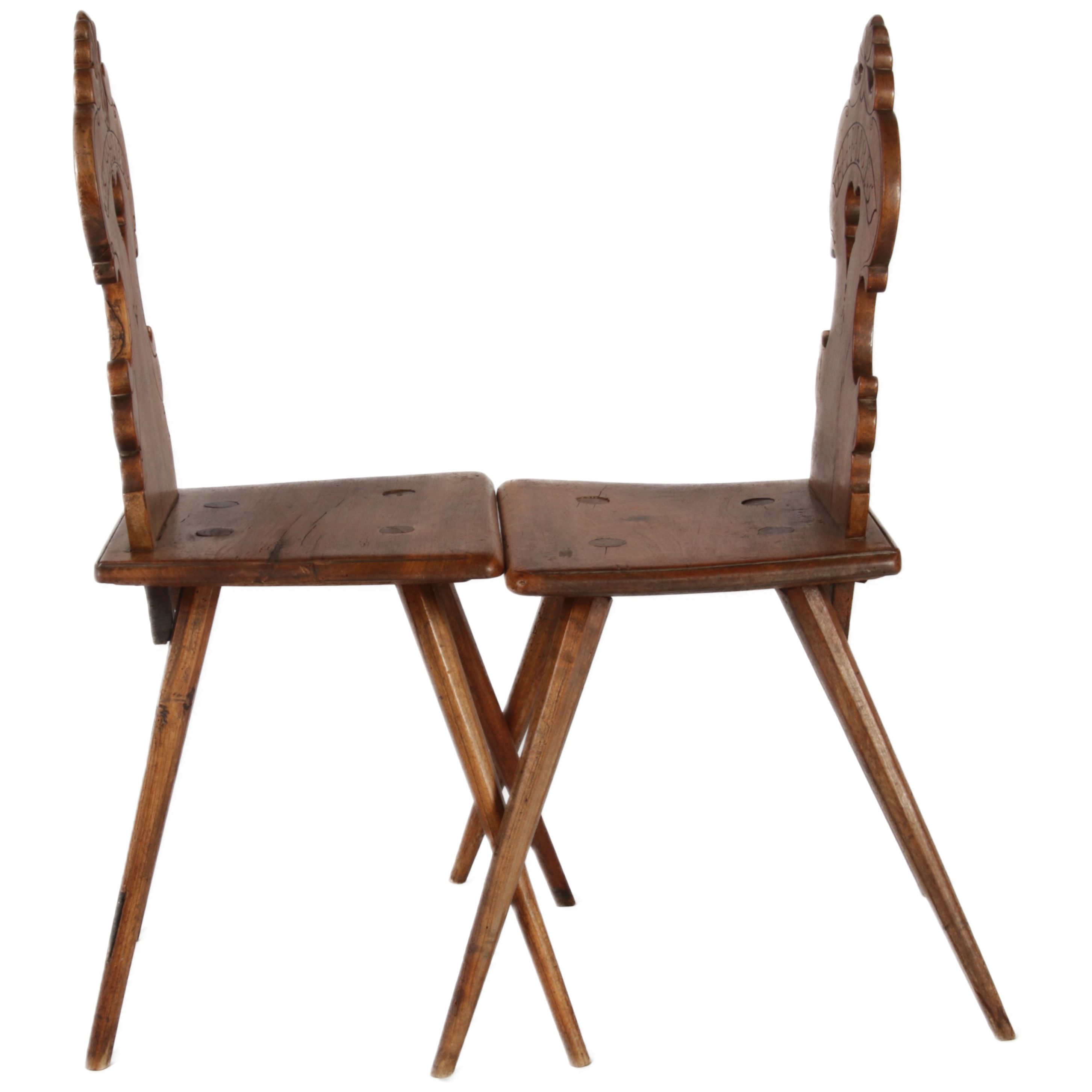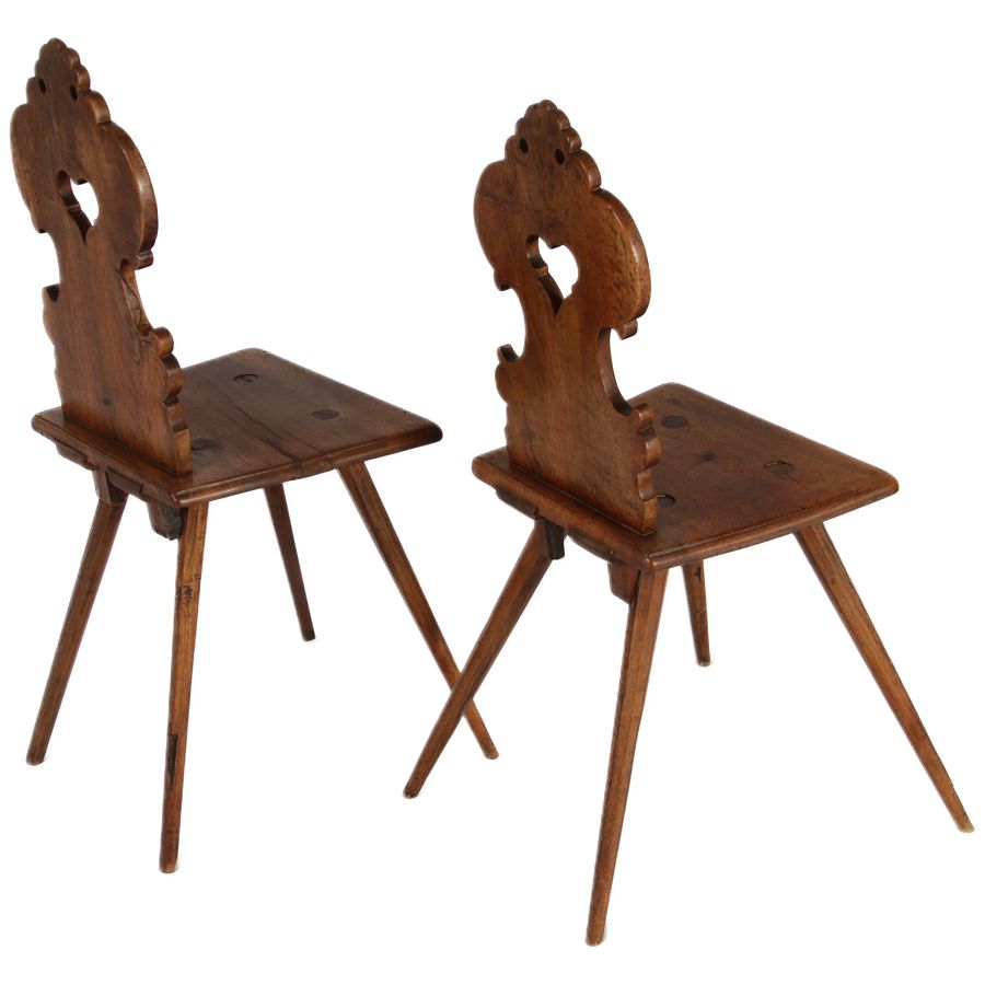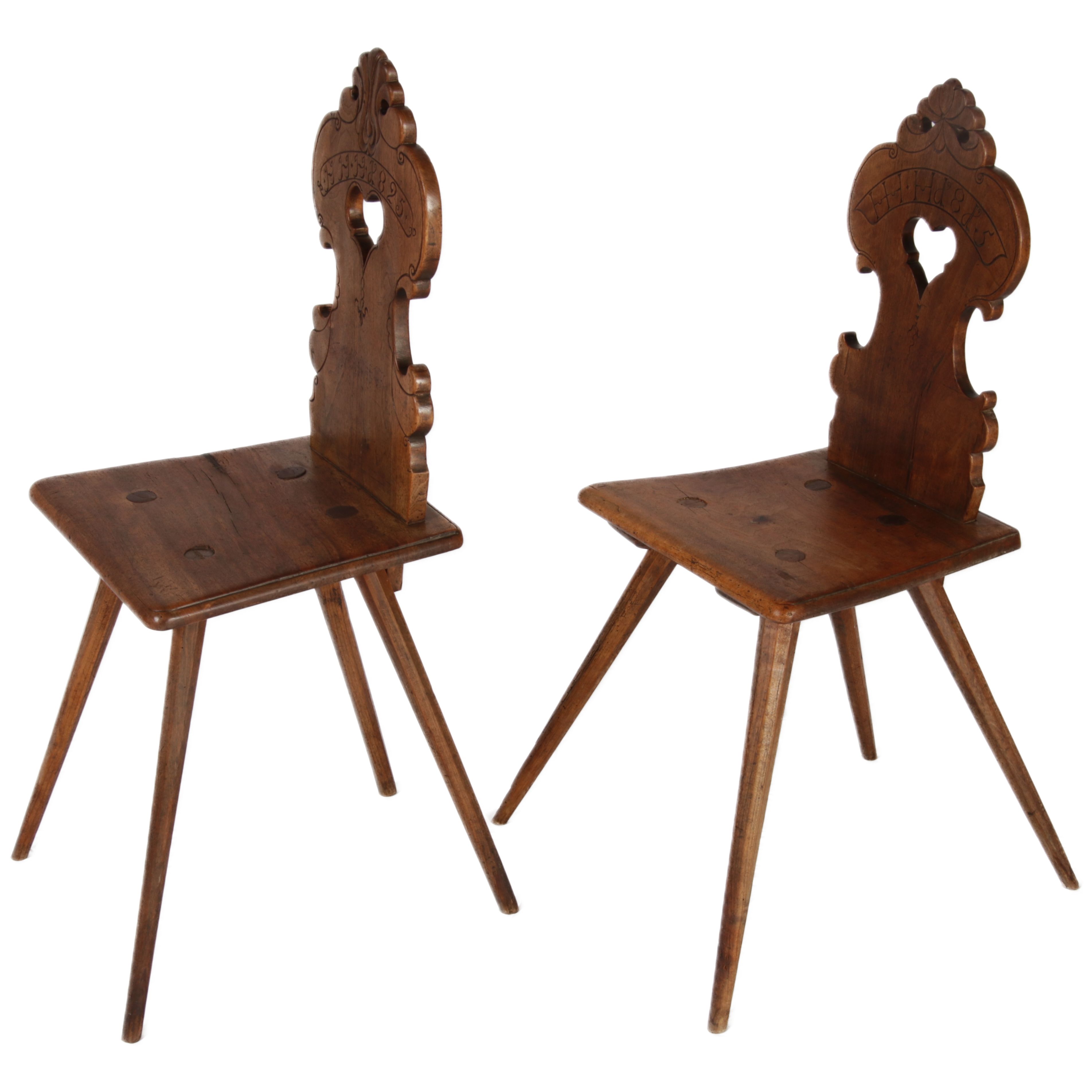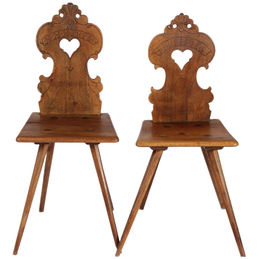2 Antike Brettstühle Datiert 1815/25 Nussbaum |